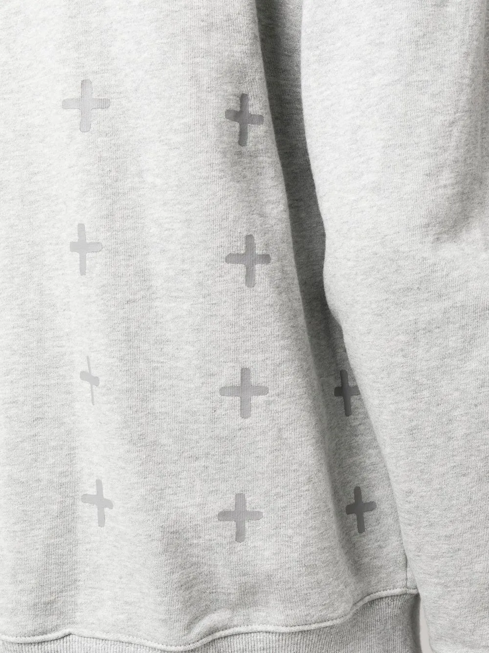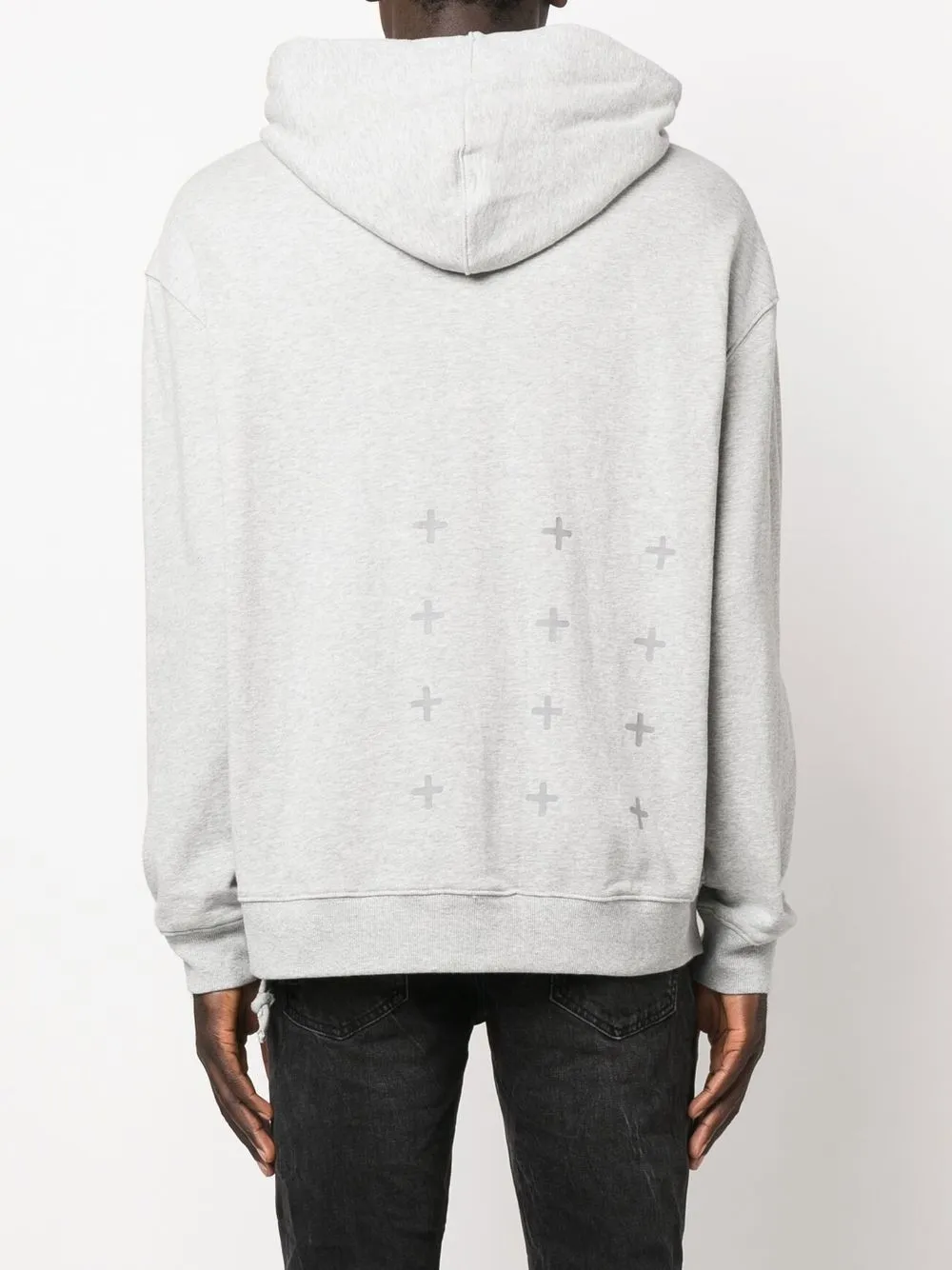 Серый, хлопок, графичный принт на спине, затягивающийся на шнурок капюшон, длинные рукава, карман-муфта, эластичные манжеты и эластичный подол.