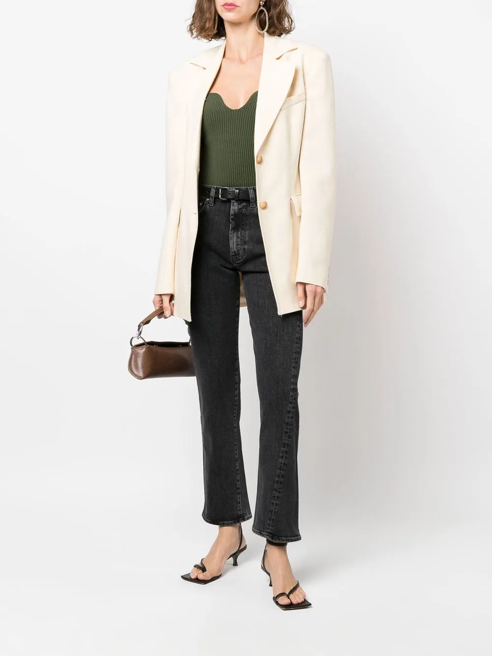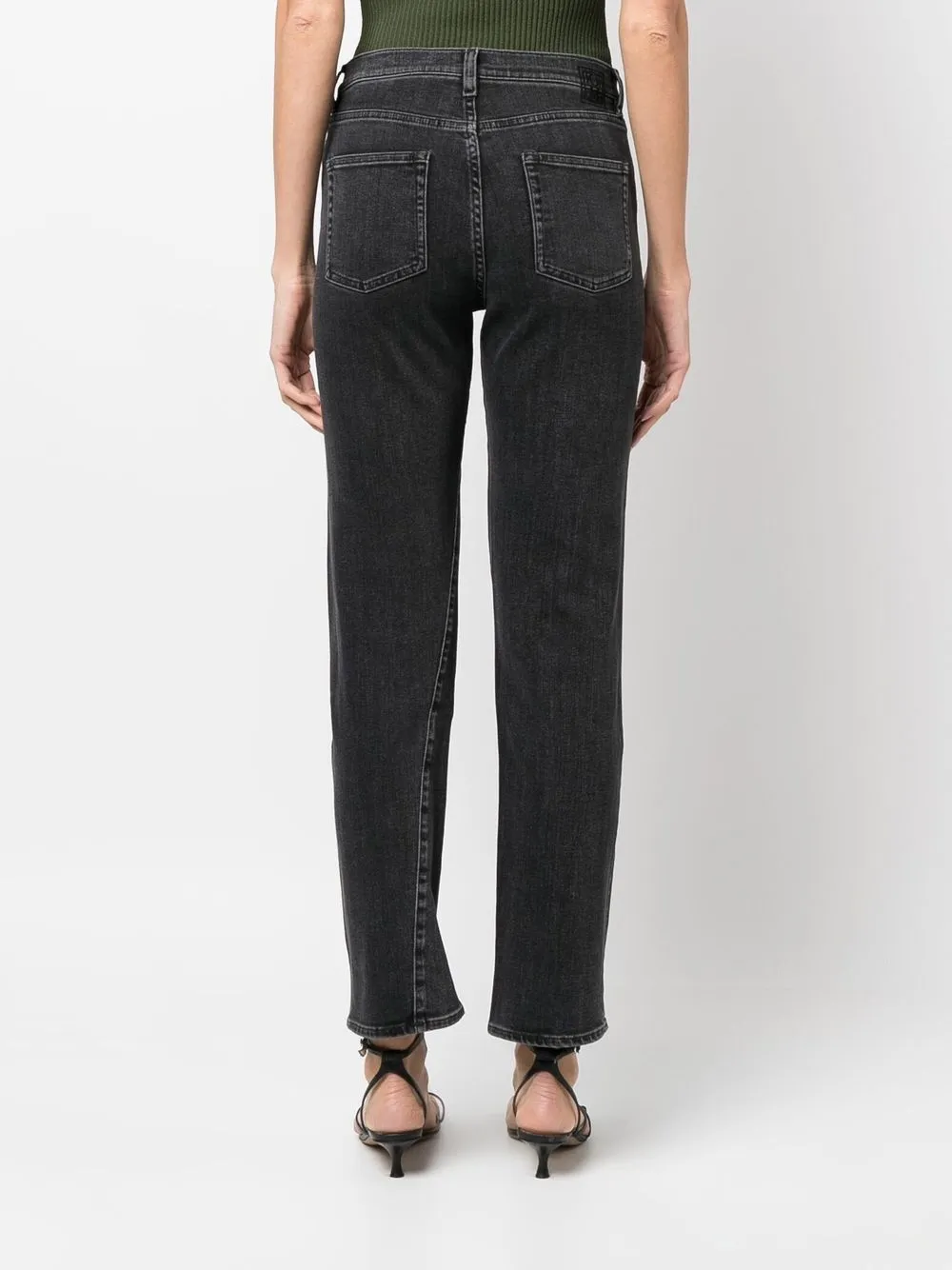 Прямой крой, нашивка с логотипом сзади, завышенная талия, петли для ремня, застежка на молнии и пуговице спереди, классическая пятикарманная модель и укороченная длина. Цвет: черный.