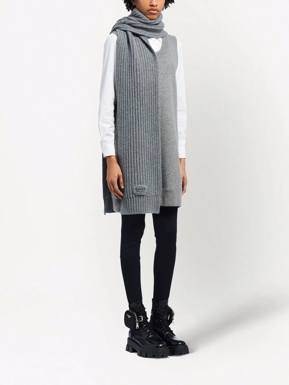 Шарф с нашивкой-логотипом Prada, серый 68 853₽