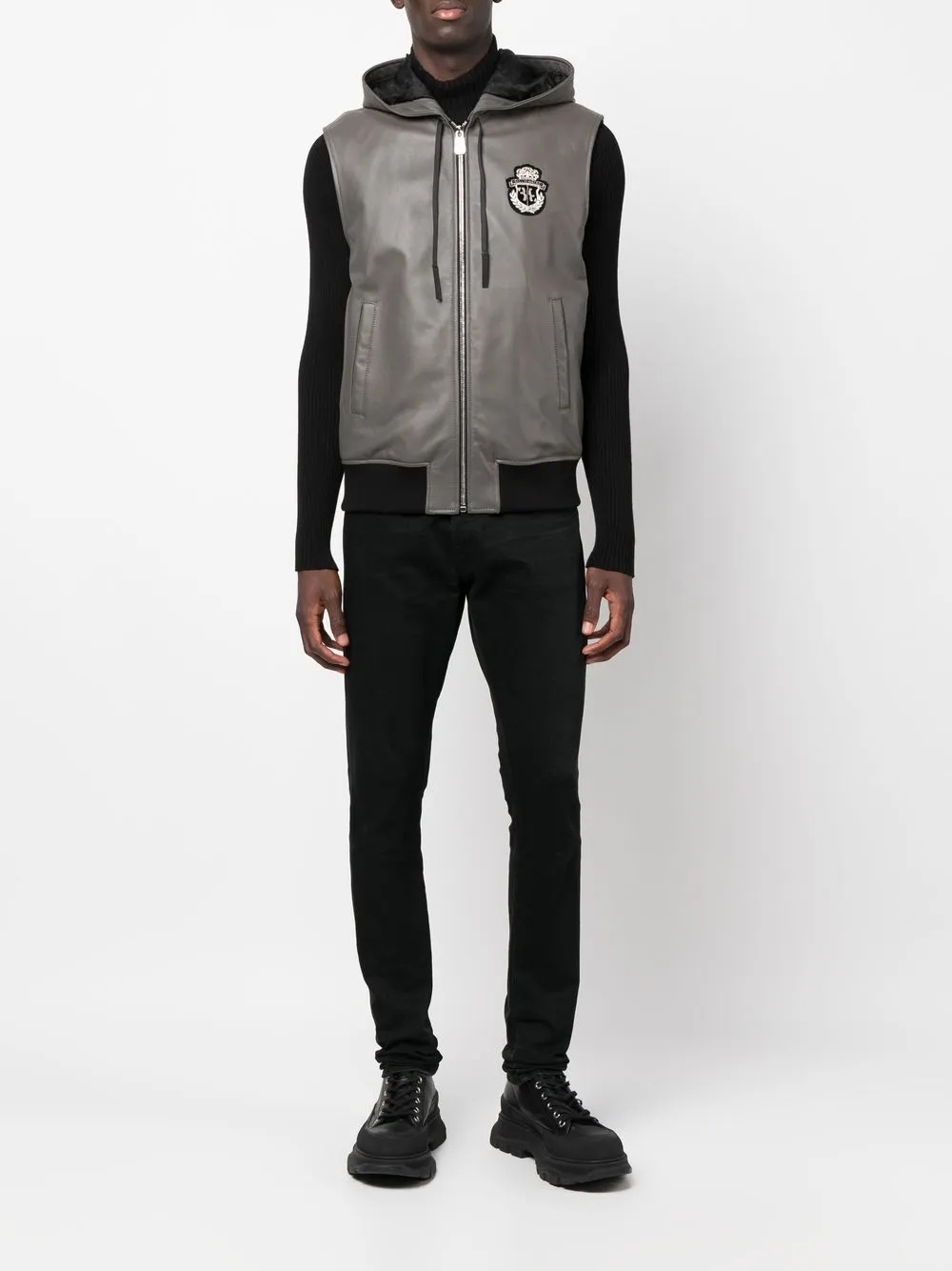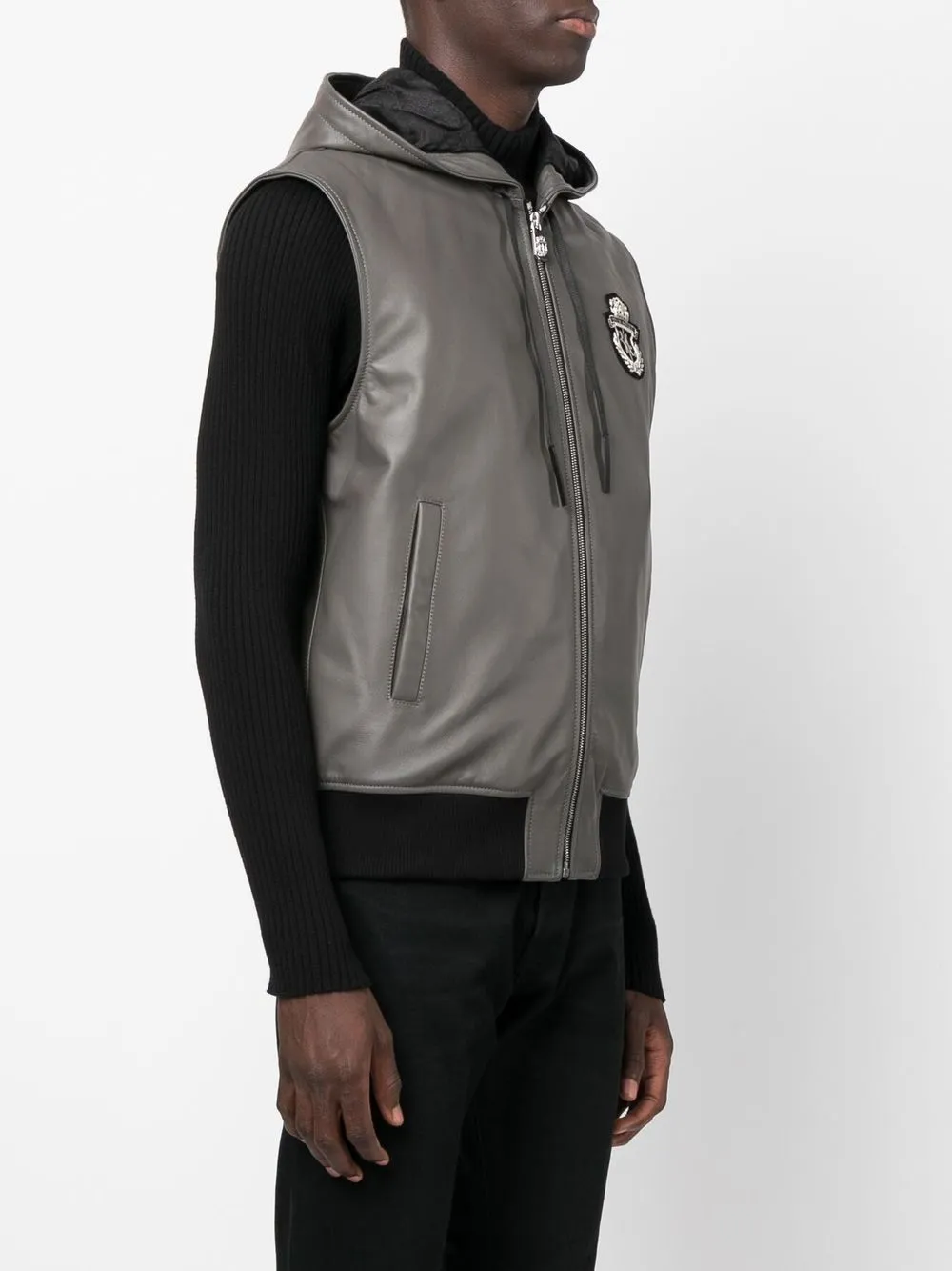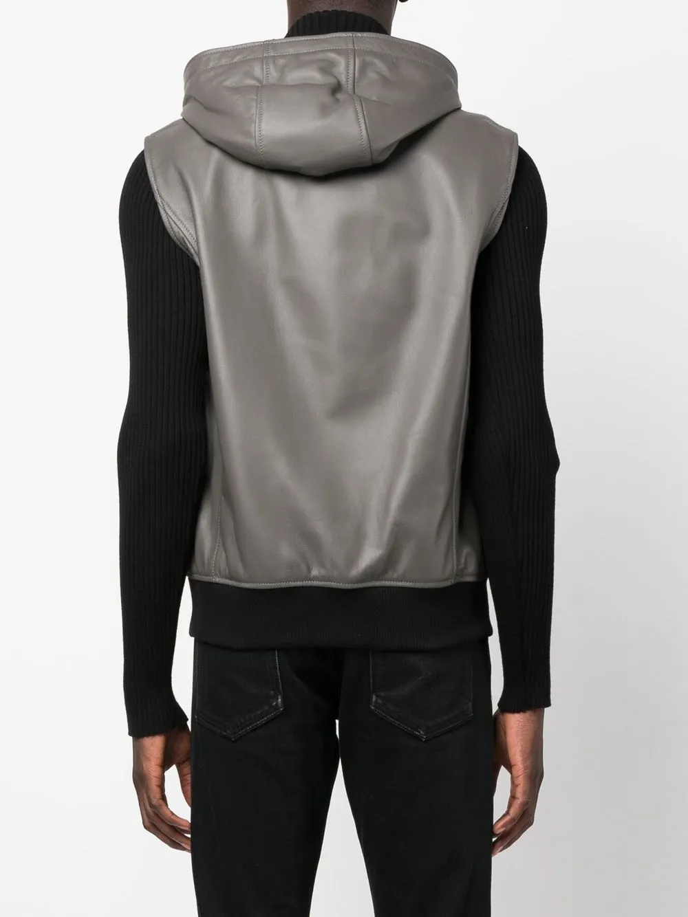 Кожаный жилет на молнии с капюшоном Billionaire, серый