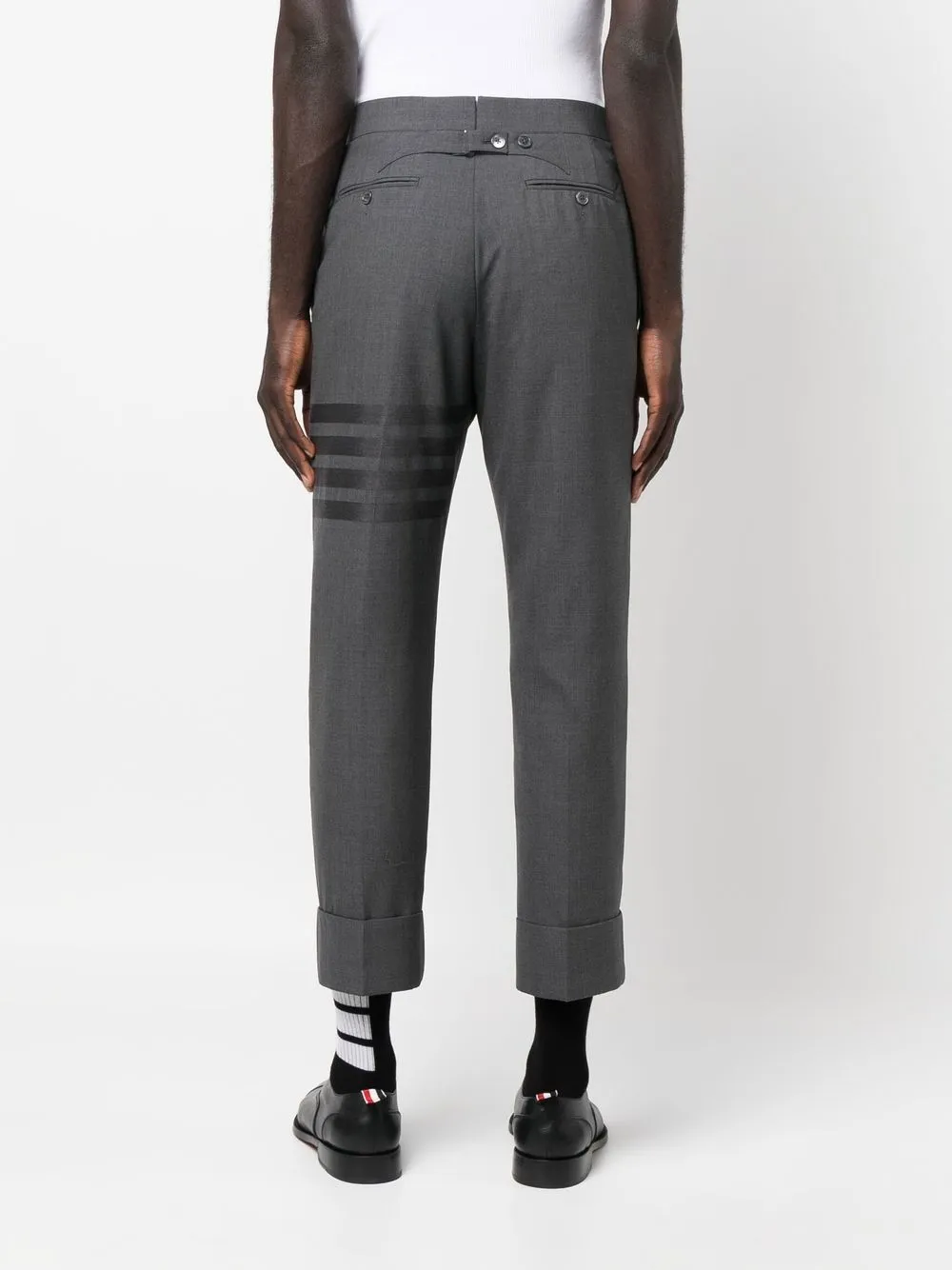 Укороченные шерстяные брюки в полоску THOM BROWNE, серый 136 693₽