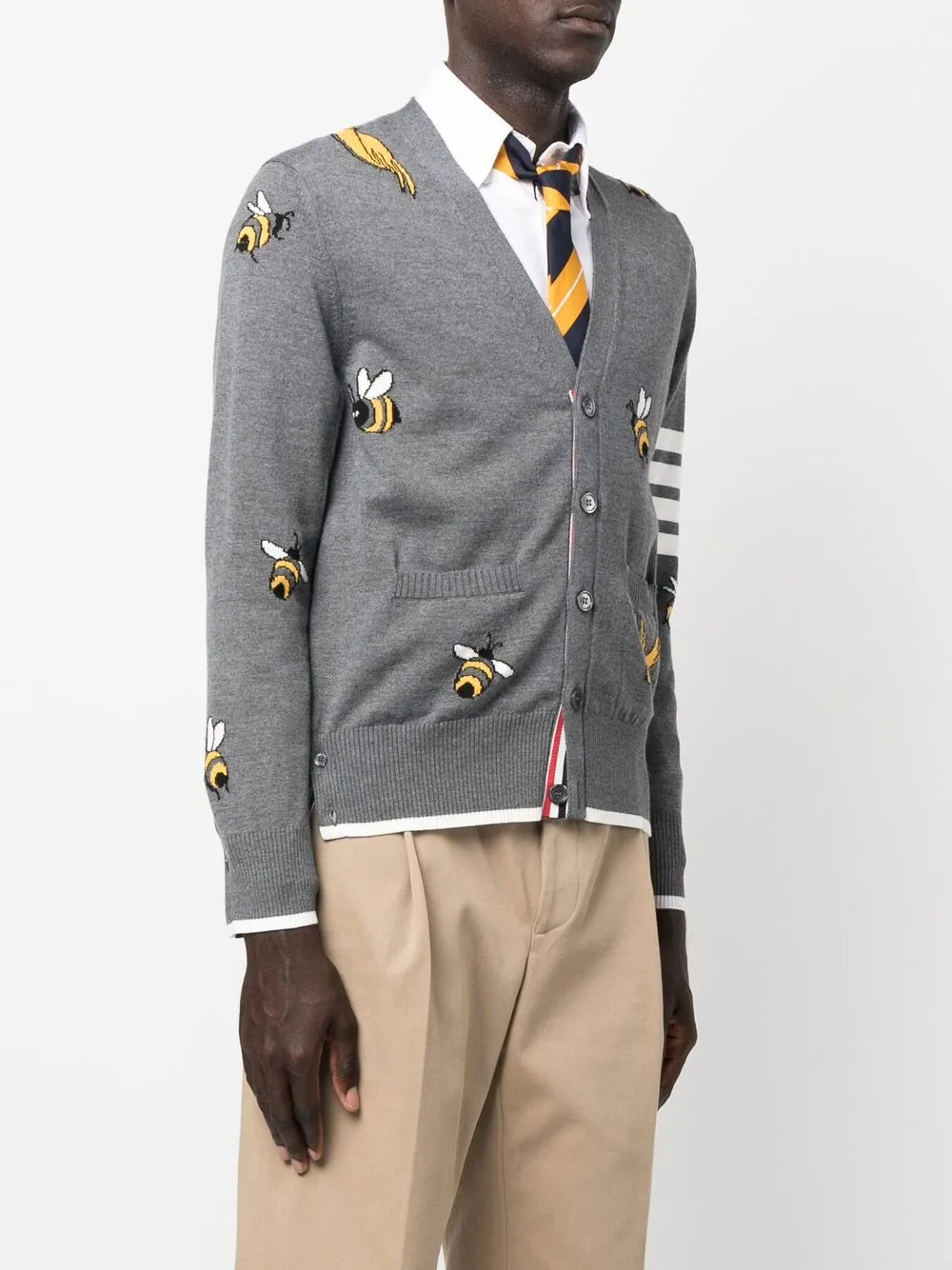 Кардиган с полосками 4-Bar THOM BROWNE, серый