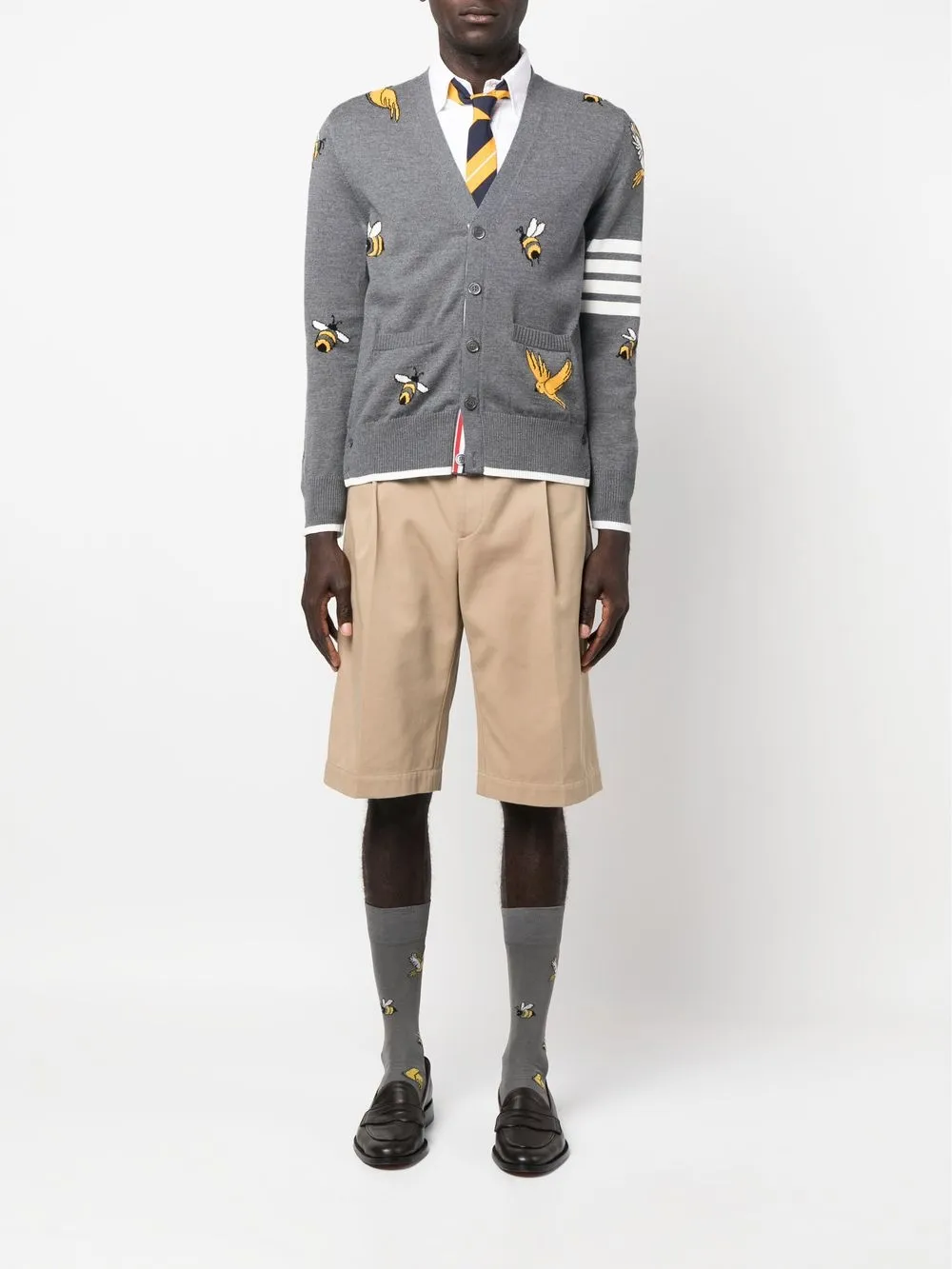 Кардиган с полосками 4-Bar THOM BROWNE, серый 135 848₽