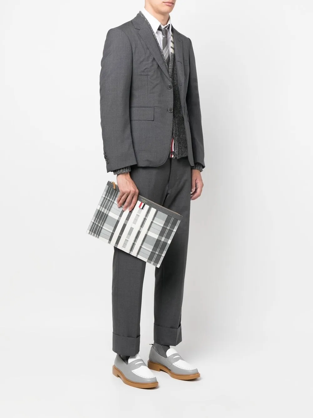 Клатч с контрастной отделкой THOM BROWNE, серый