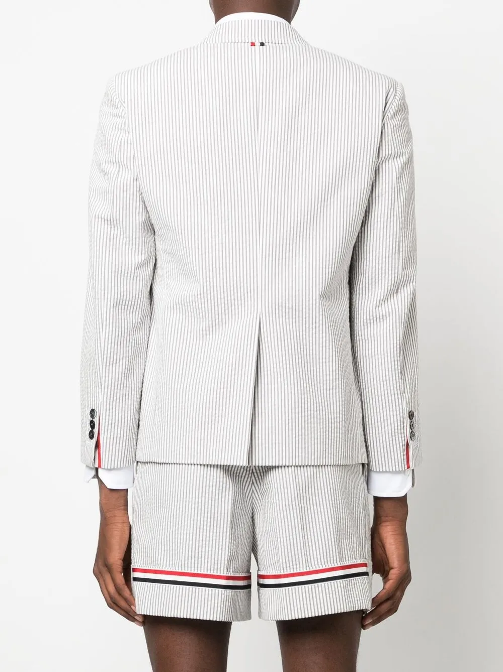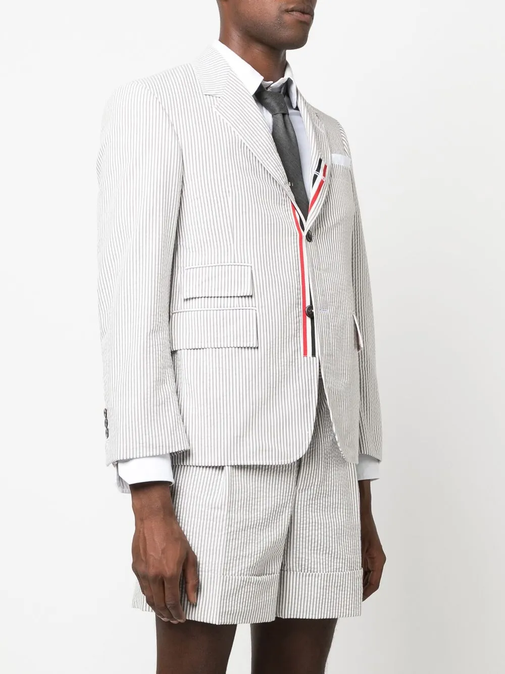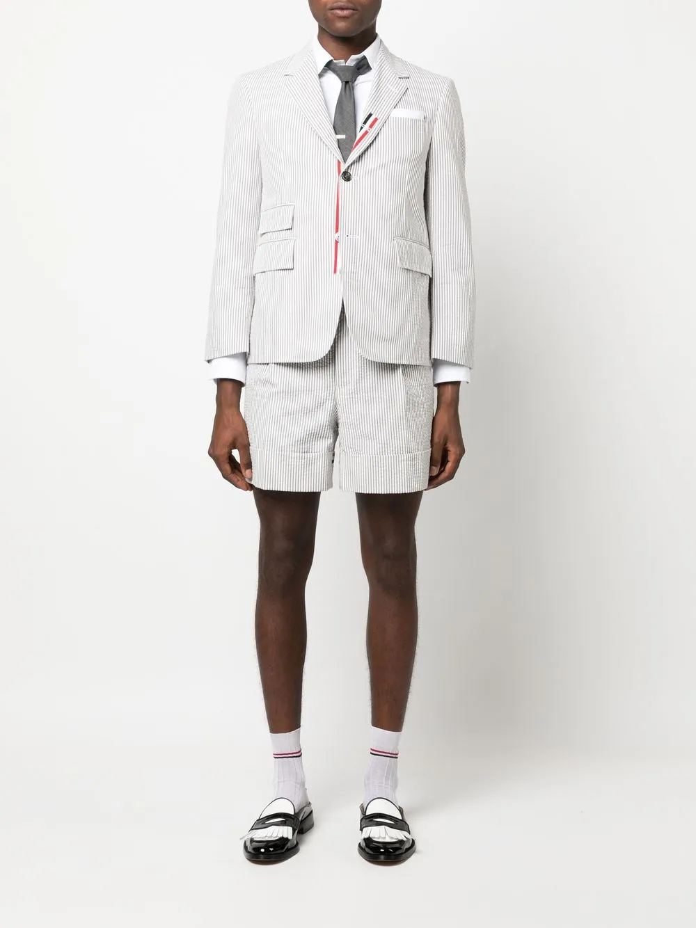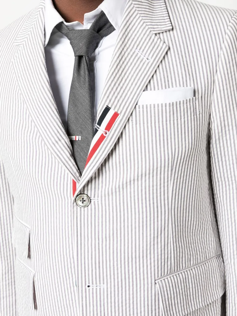 Однобортный пиджак из сирсакера THOM BROWNE, серый
