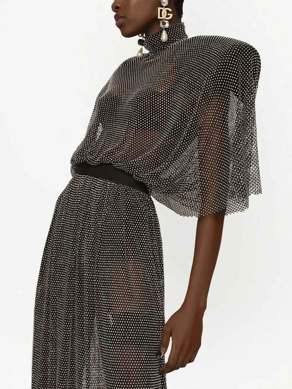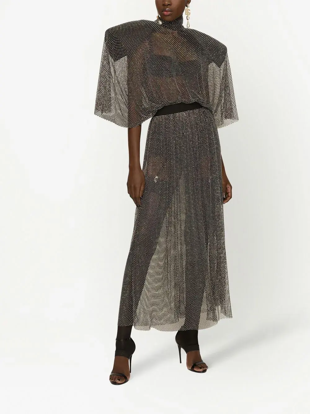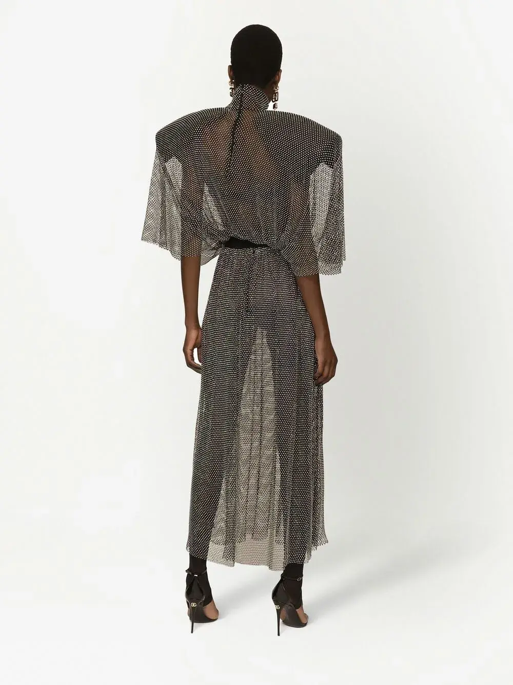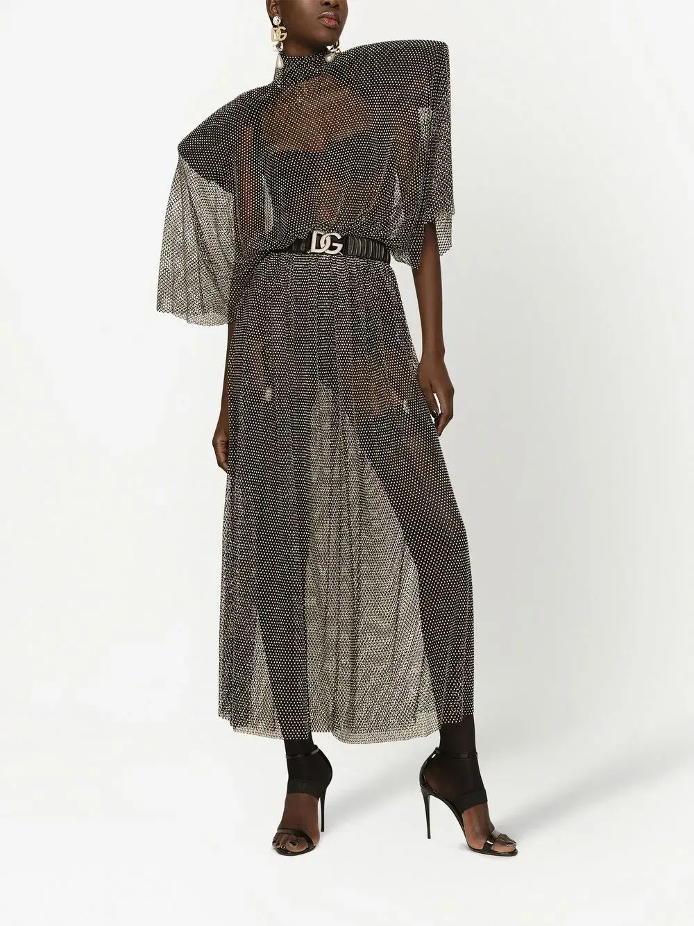 Сетчатое платье макси со стразами DOLCE & GABBANA, серый