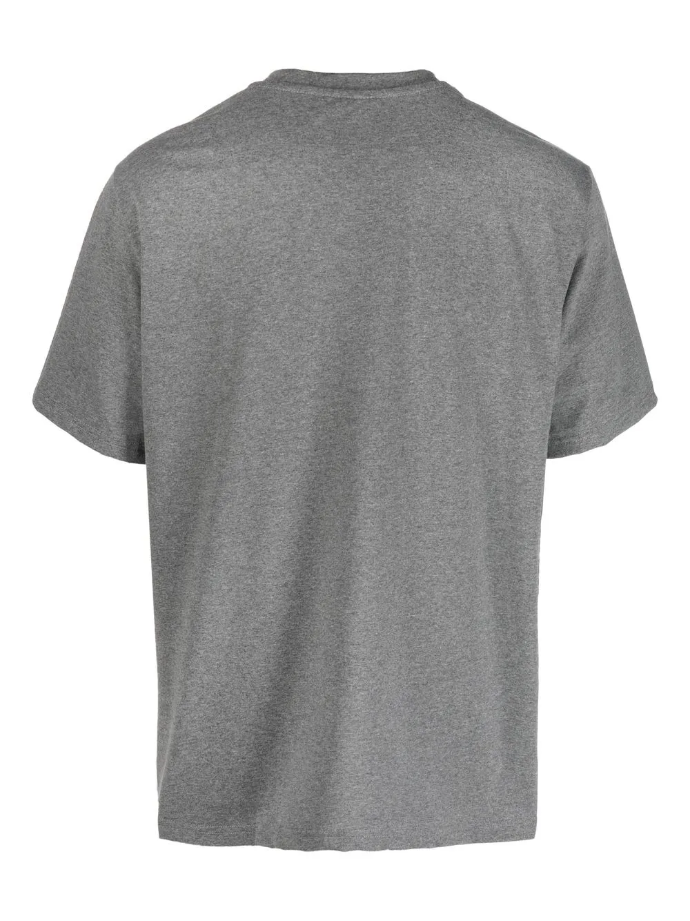 Серый, хлопок, круглый вырез, логотип и короткие рукава.