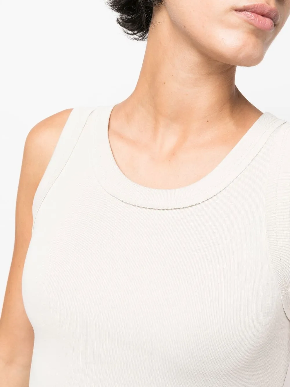 Светло-серый, органический хлопок, круглый вырез, без рукавов и прямой подол. Ответственный выбор:
