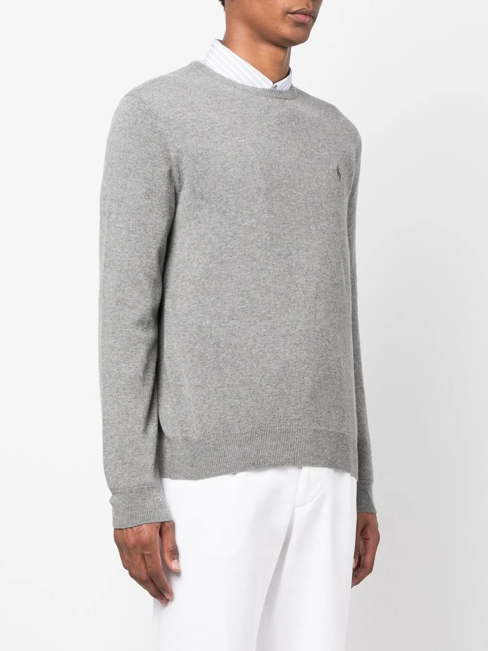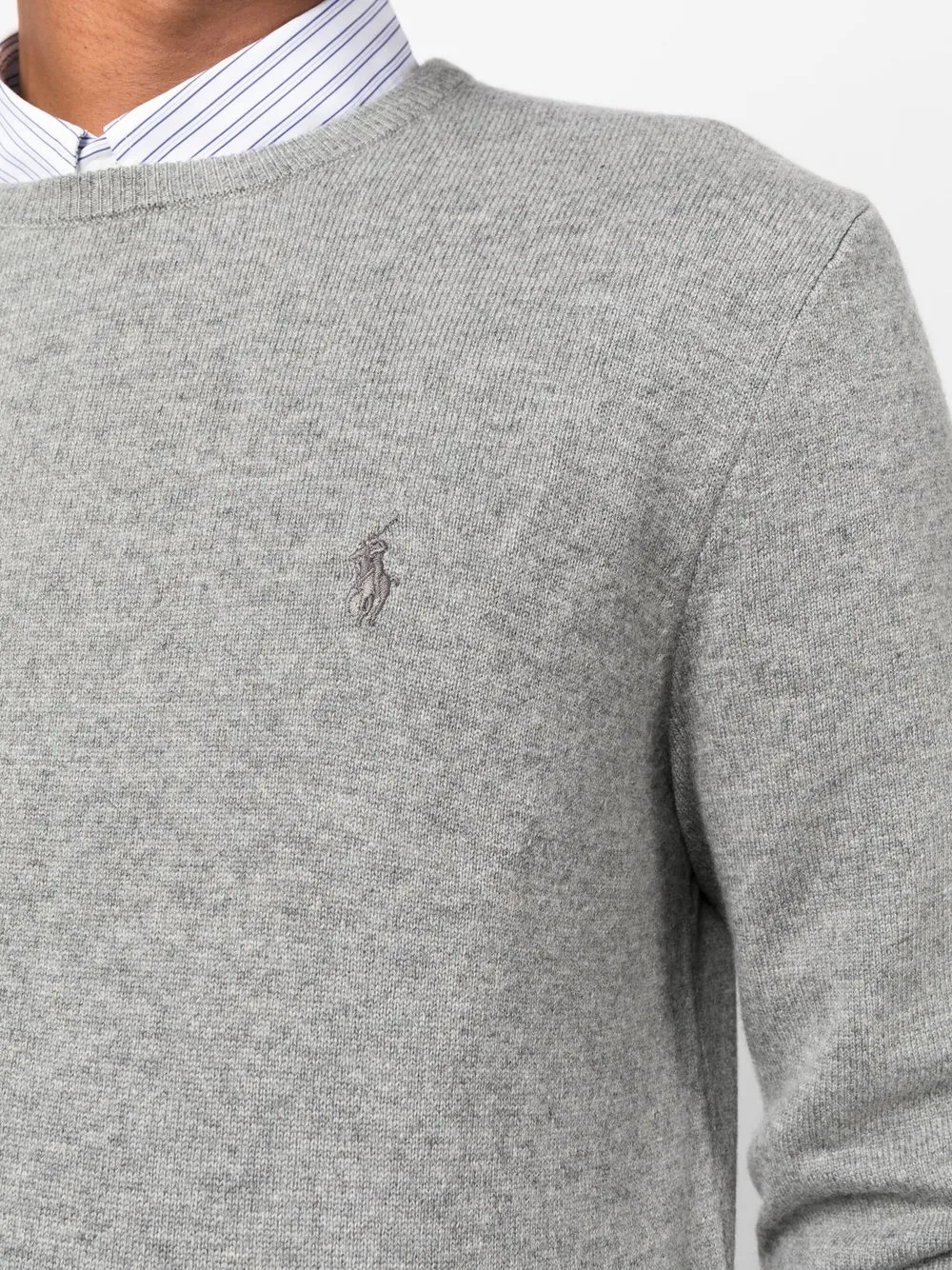 Пепельно-серый, шерсть, знаковый логотип Polo Pony, вязаные края в рубчик, круглый вырез, длинные рукава и прямой подол.