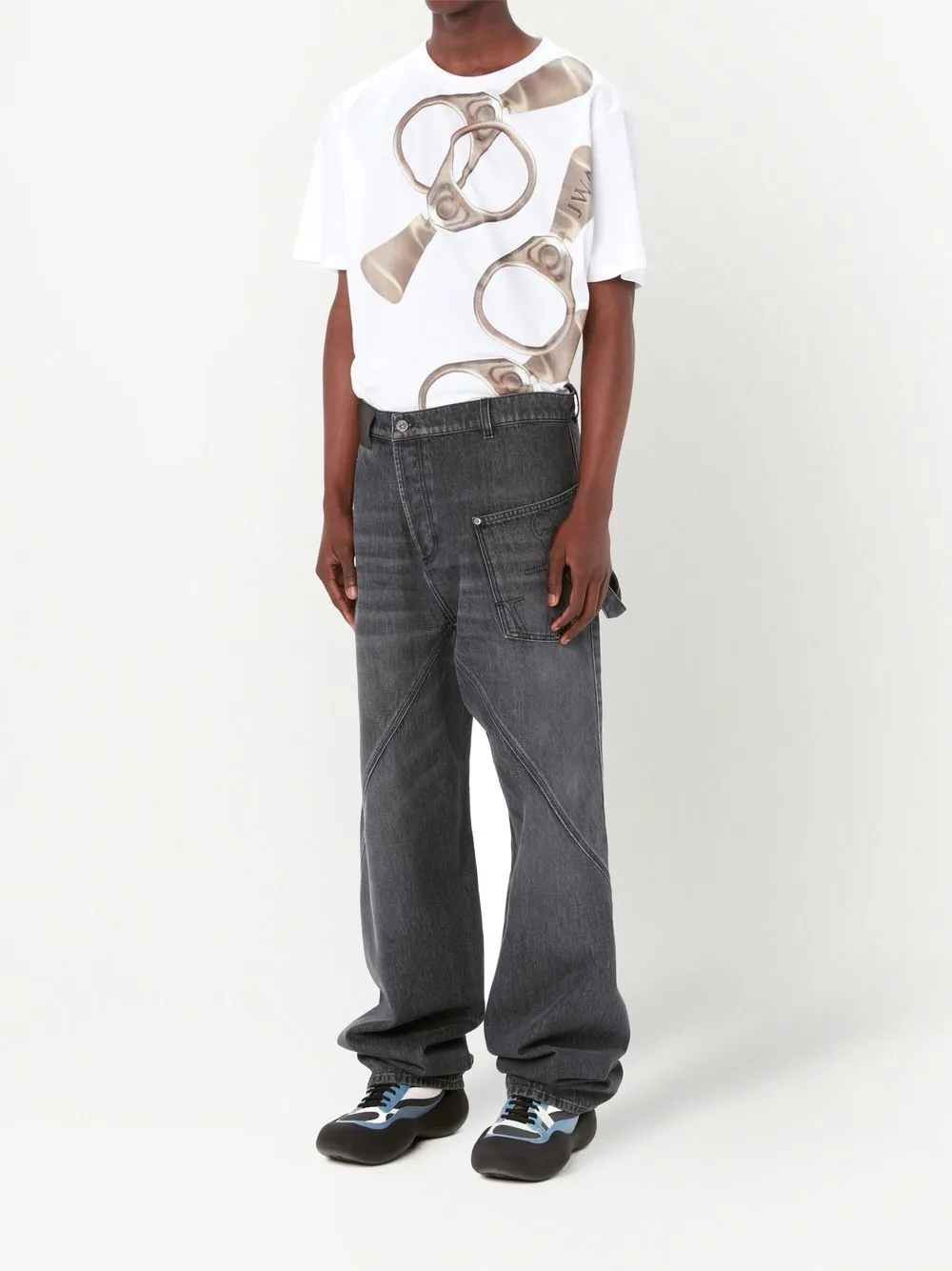 Драпированные джинсы оверсайз JW ANDERSON, серый