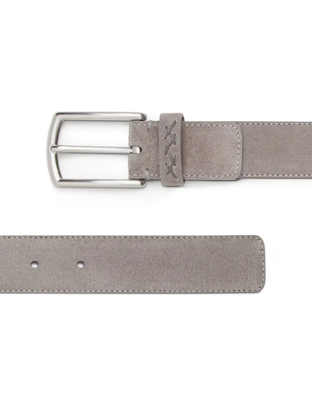 Светло-серый, замша, декоративная строчка, застежка на серебристой пряжке, прорезанные отверстия, регулируемый дизайн и несколько оборотов.