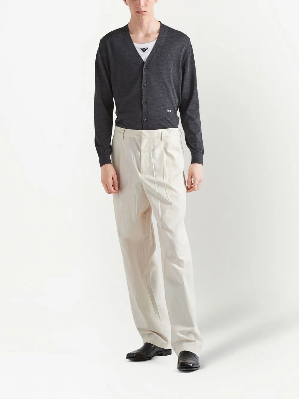 Шерстяной кардиган с V-образным вырезом Prada, серый