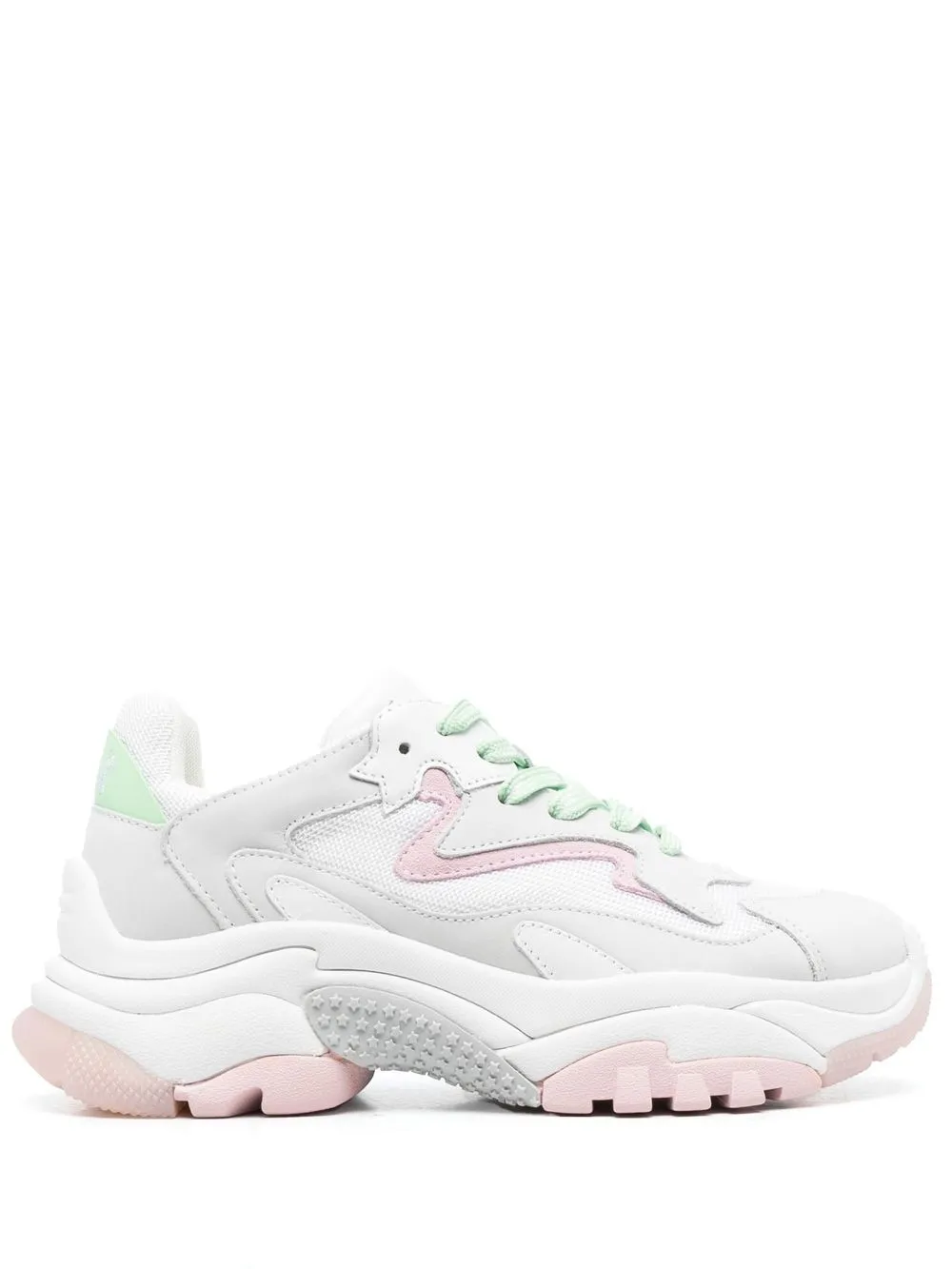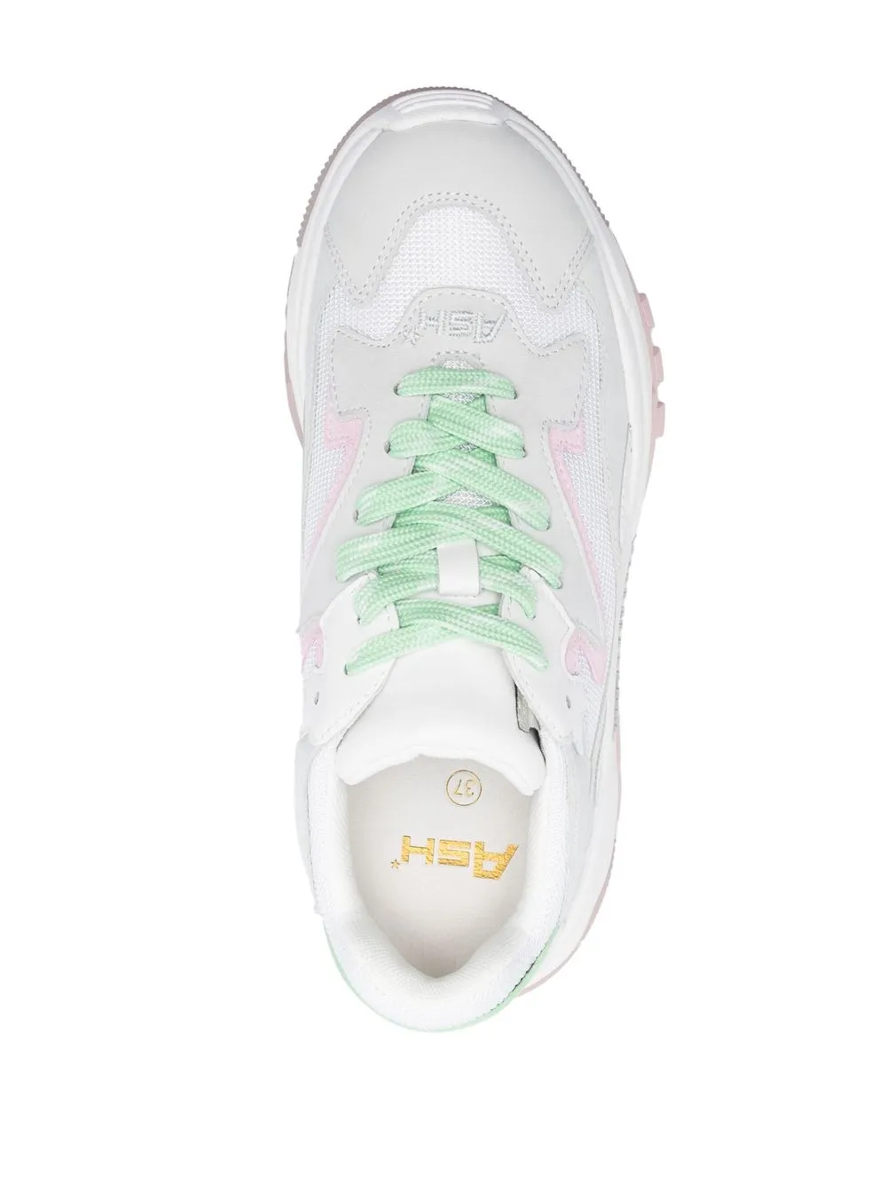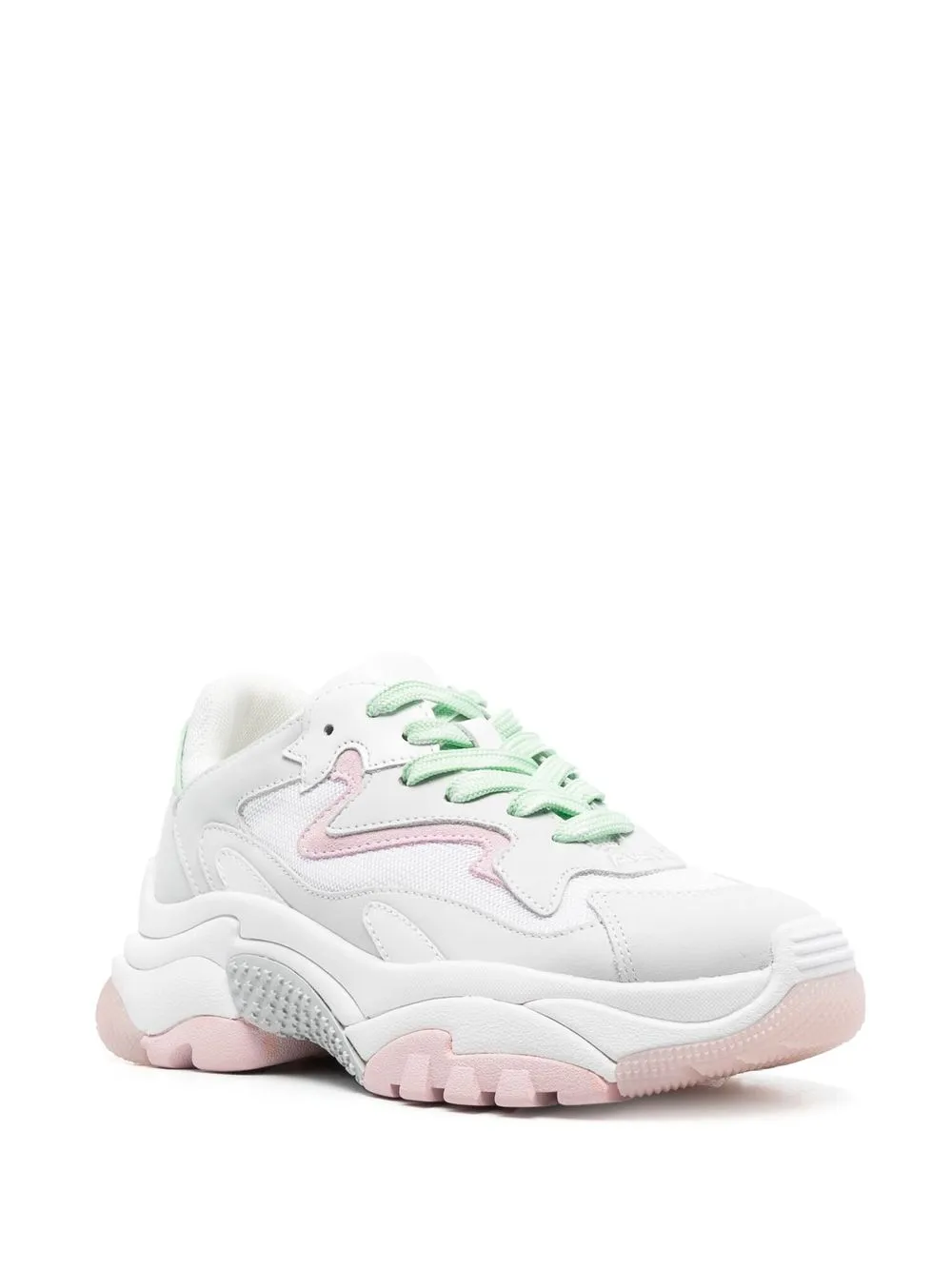 Белый/разноцветный, телячья кожа, вставки, шнуровка спереди, вышитый логотип спереди, закругленный носок, задник с логотипом и массивная резиновая подошва.