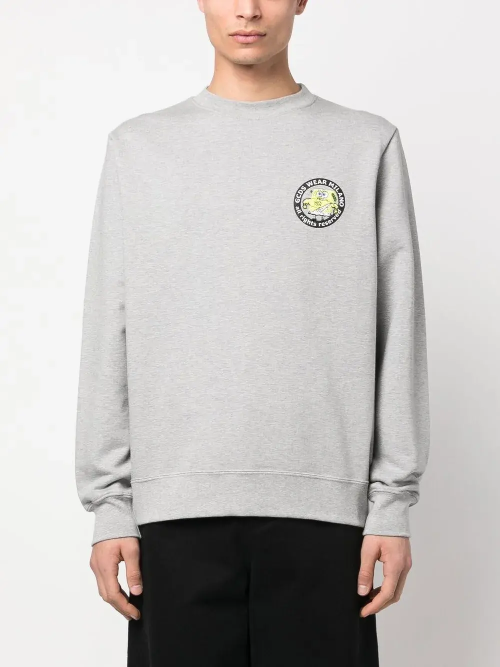 Серый, хлопок, принт с логотипом сзади, принт с логотипом на груди, длинные рукава, круглый вырез и прямой подол.