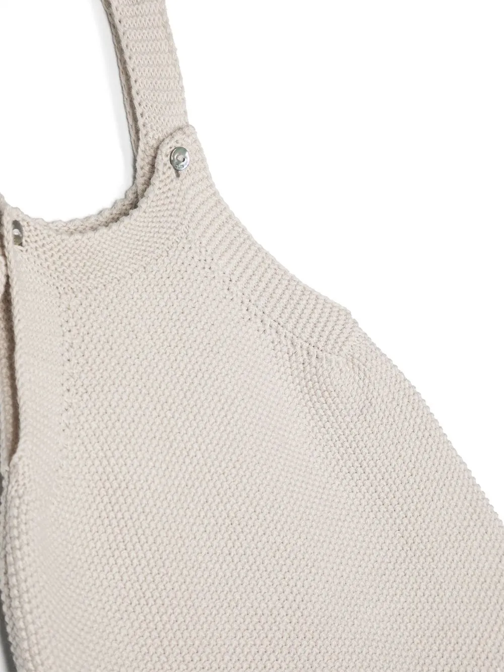Светло-серый, хлопок, трикотажный материал, без рукавов, застежка на пуговицах спереди и отделка в рубчик.