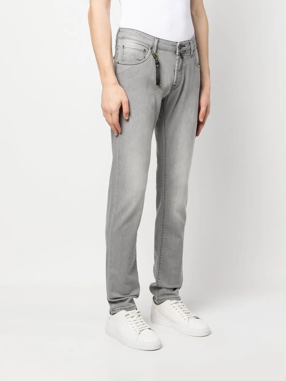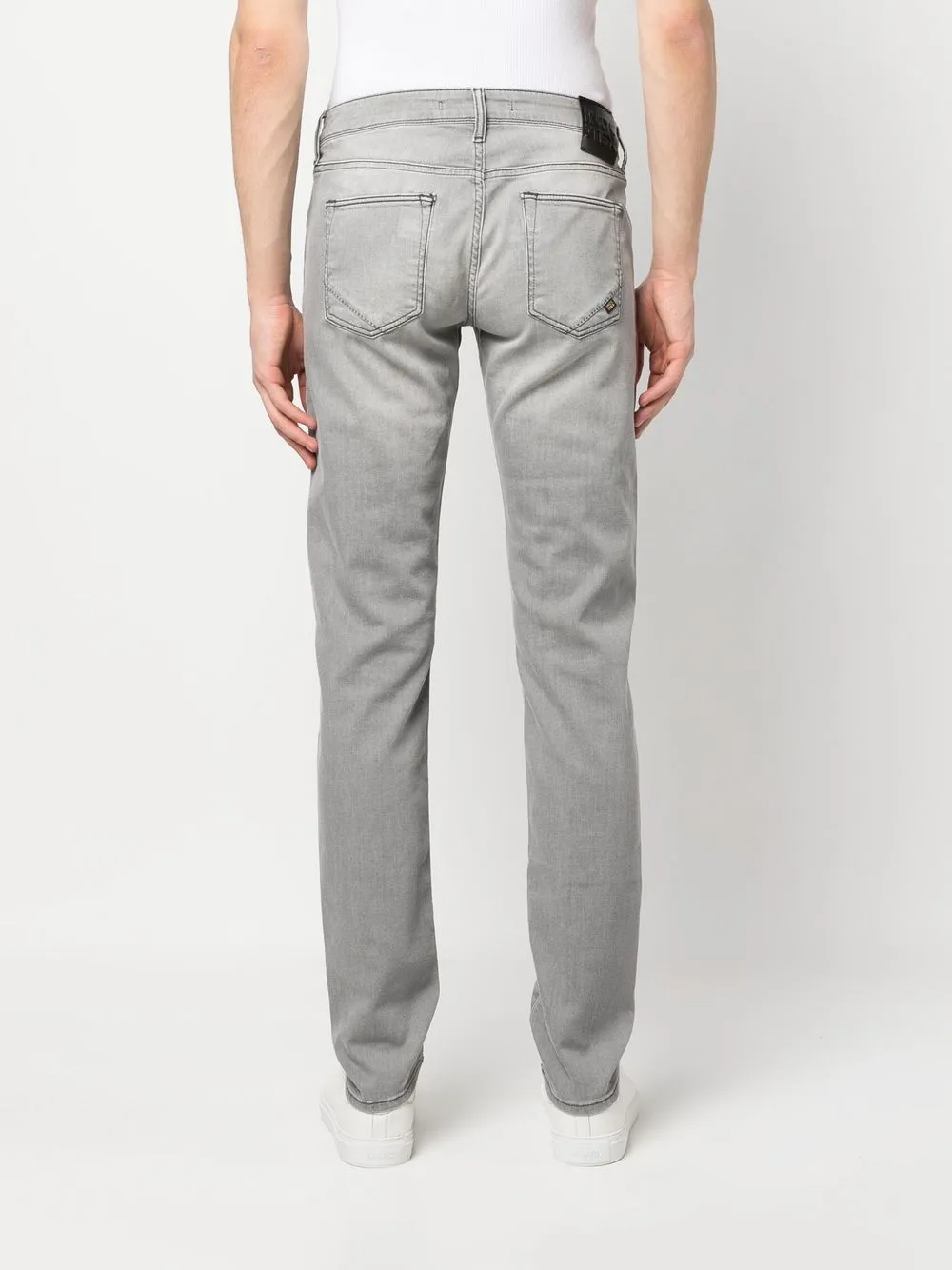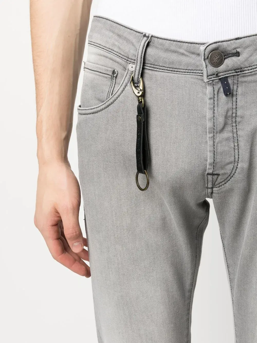 Серый, эластичный хлопок, деним, нашивка с логотипом сзади, пуговицы с выгравированным логотипом, брелок-футляр для ключей, петли для ремня, ширинка на пуговицах, пять карманов и прямой крой.