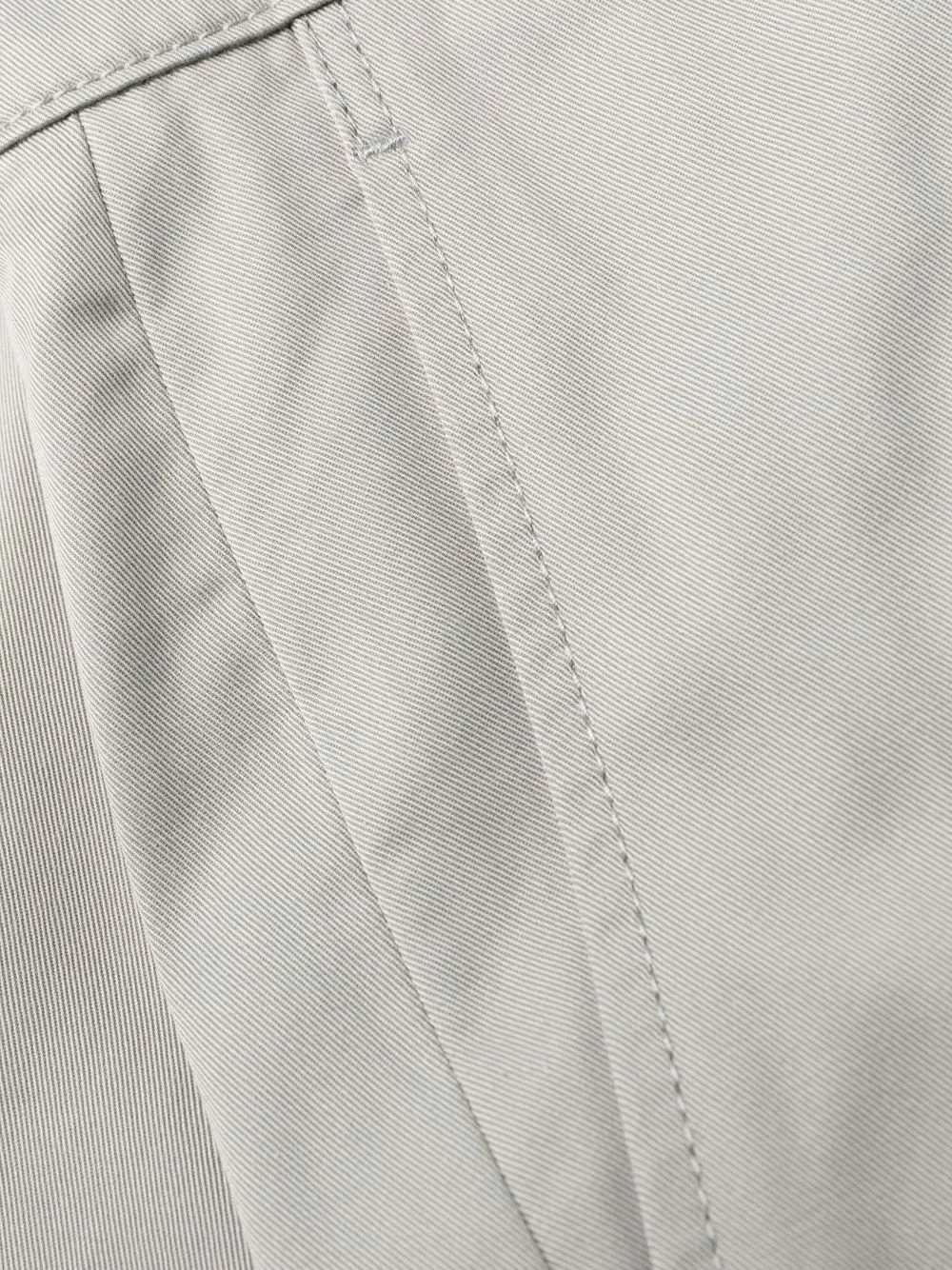Нашивка с логотипом сзади, потайная застежка на молнии и пуговицах, два передних кармана, два прорезных кармана на пуговицах сзади, петли для ремня и укороченная длина.