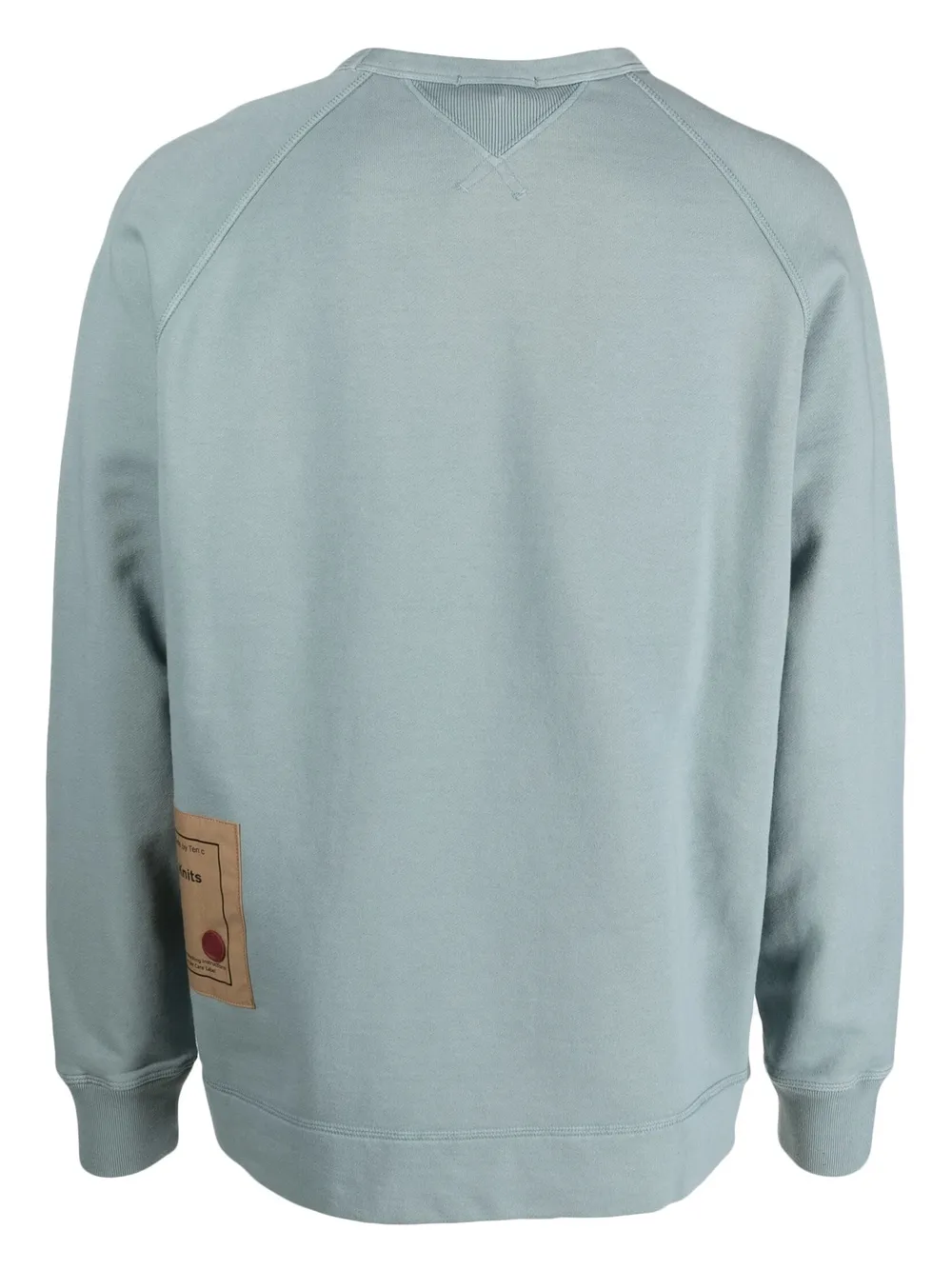 Сине-серый, хлопок, нашивка с логотипом сбоку, декоративная строчка, накладной карман спереди, круглый вырез, рукава с манжетами, длинные рукава, эластичные манжеты, эластичный подол и прямой подол.