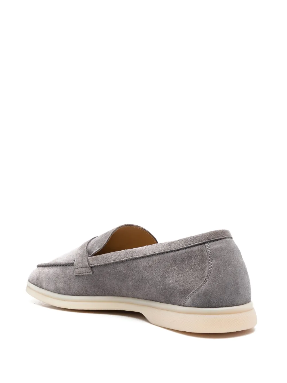Серый, замша из телячьей кожи, декоративные кисточки, строчка в тон, миндалевидный носок, кожаная стелька с логотипом и плоская резиновая подошва.