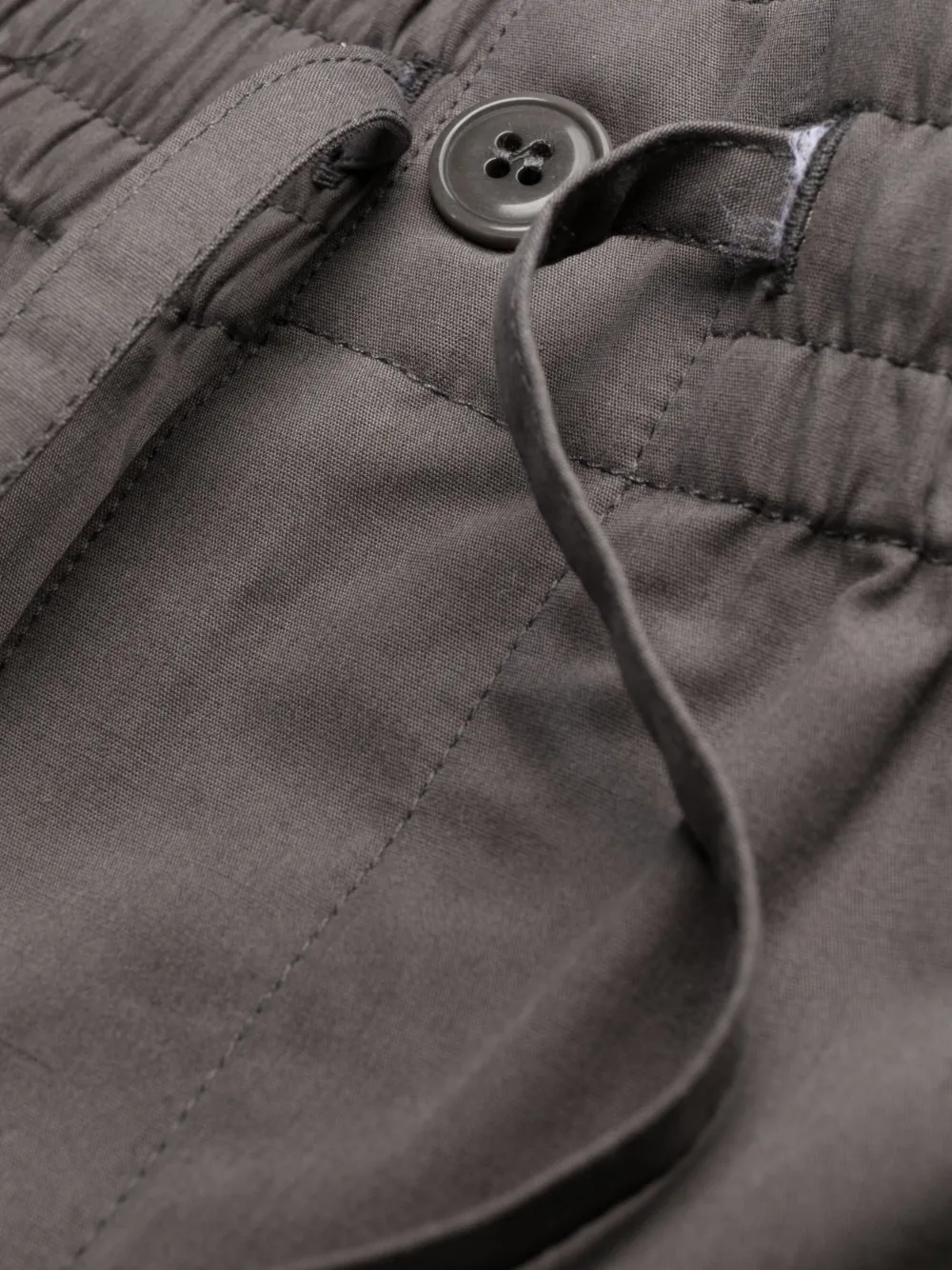 Серый, хлопок, кулиска на талии, нашивка с логотипом сзади, два прорезных кармана по бокам, прорезной карман на пуговице сзади и прямой крой.