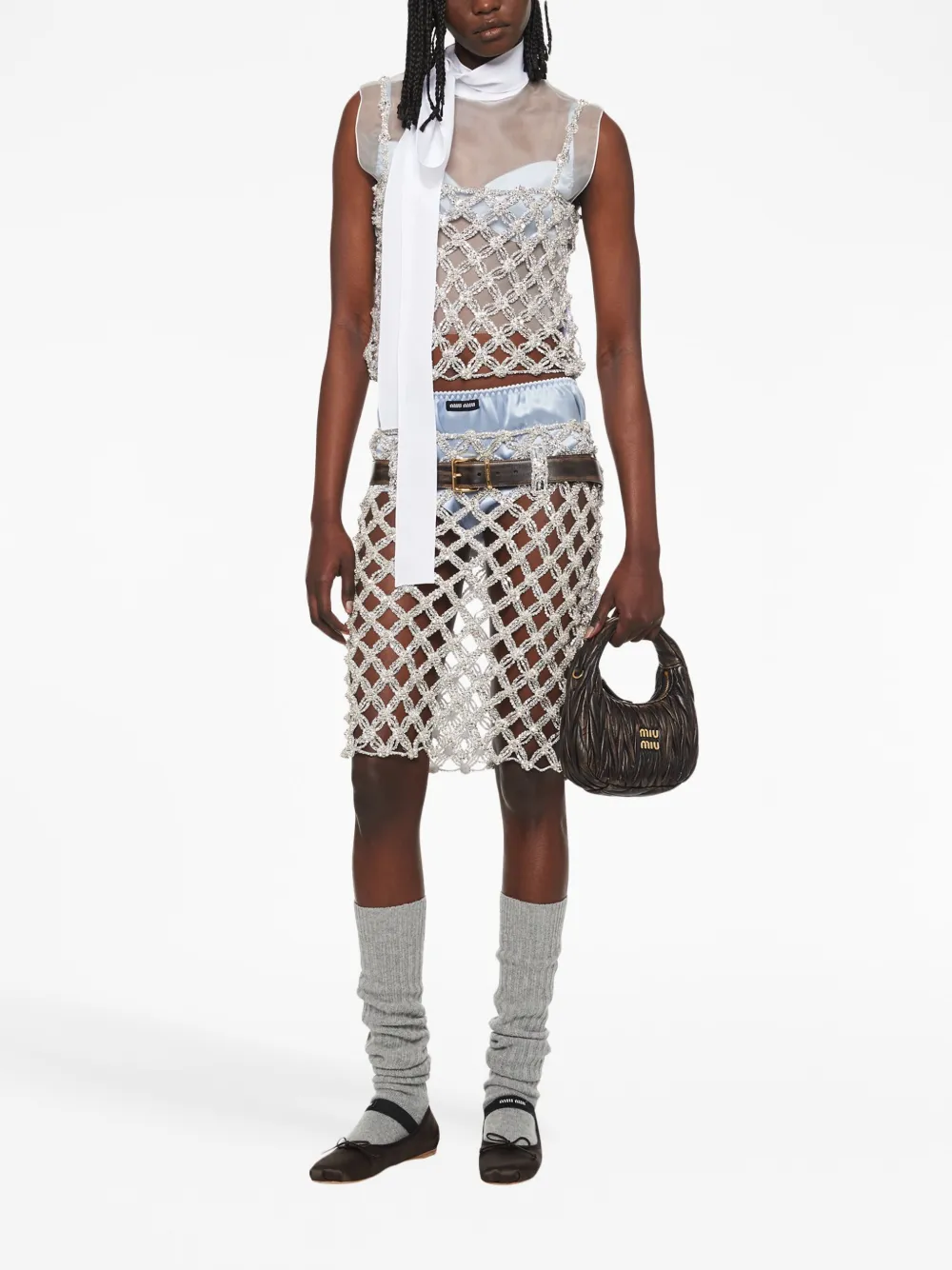 Атласный бюстгальтер-балконет MIU MIU, серый
