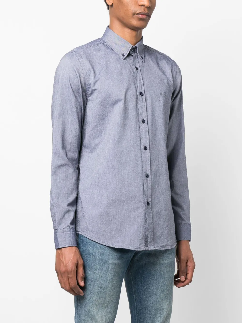 Рубашка с вышитым логотипом BOSS, серый
