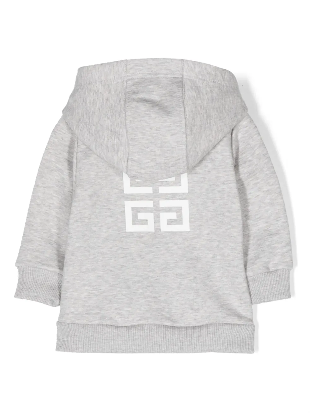 Светло-серый, белый, хлопок, эффект меланж, знаковый узор 4G, логотип спереди, классический капюшон, застежка на молнии спереди, длинные рукава и два передних кармана.
