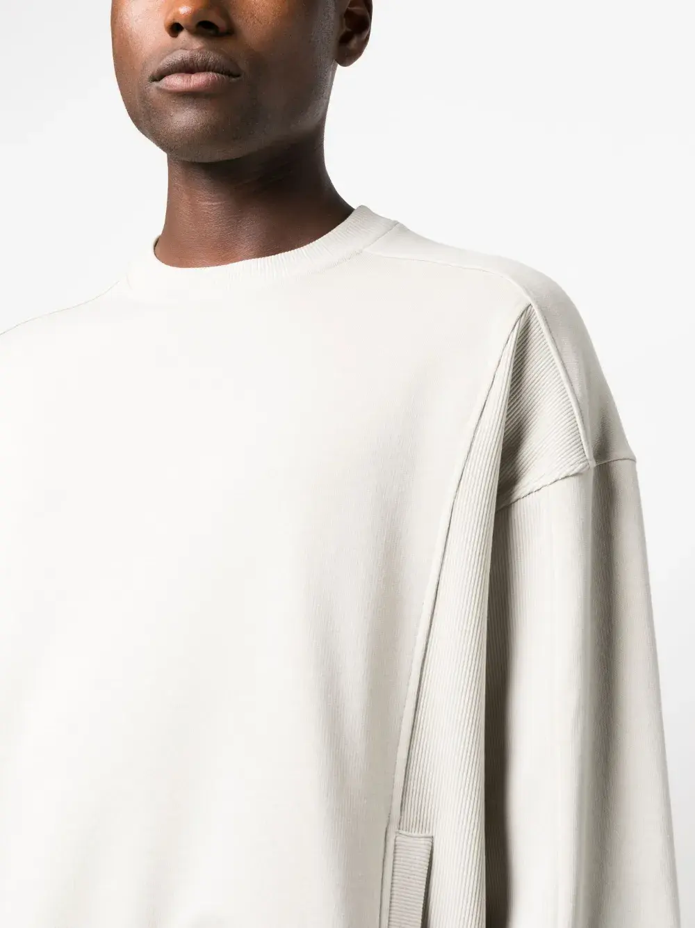 Пепельно-серый, хлопок, контрастные вставки, вставки, круглый вырез и длинные рукава. Узнать больше о том, какие товары получают отметку «Ответственный выбор», можно из материала «Как мы оцениваем экологичность и этичность».