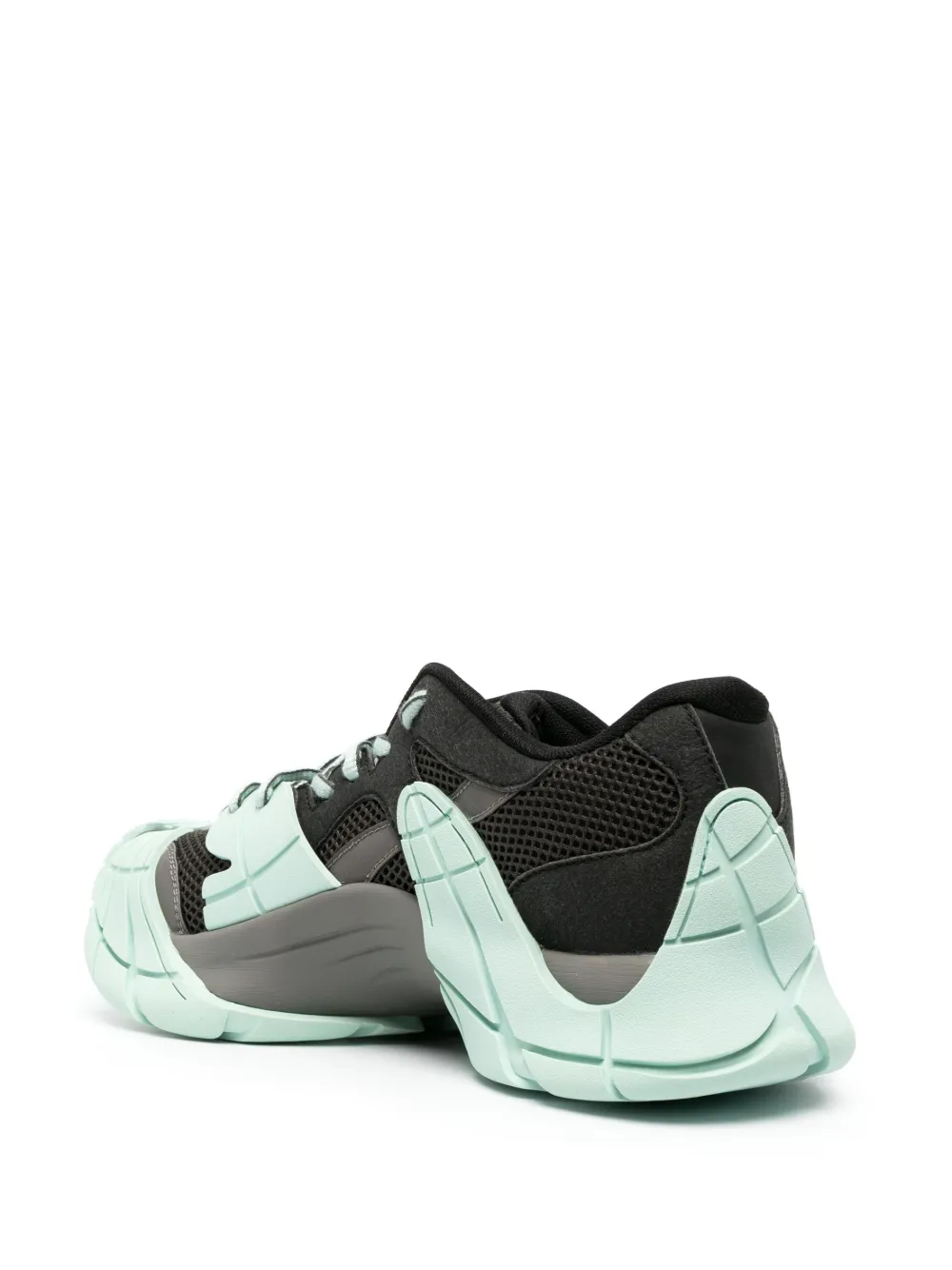 Антрацитово-серый, переработанный полиэстер, стиль колор-блок, объемная аппликация, сетчатые вставки, закругленный носок, шнуровка спереди, стелька с логотипом и массивная резиновая подошва. Этот товар как минимум на 50% состоит из переработанных или повторно использованных материалов. Узнать больше о том, какие товары получают отметку «Ответственный выбор», можно из материала «Как мы оцениваем экологичность и этичность».