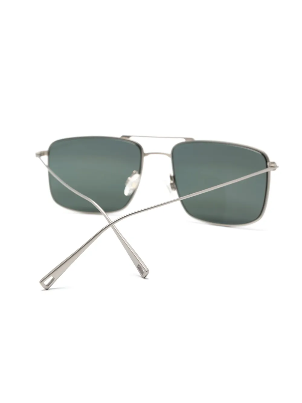 Серый, титан, серебристая фурнитура, оправа «пилот», зеркальные линзы, линзы с поляризационным фильтром, носоупоры, прямые дужки и прямые наконечники дужек. В комплект входит защитный чехол для очков.