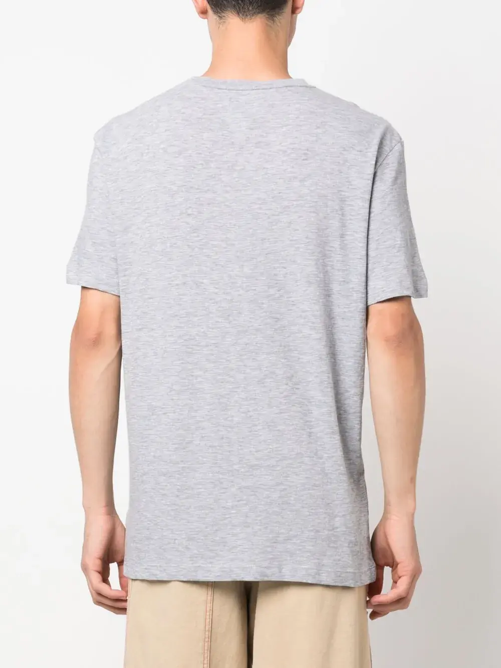 Светло-серый, смесовый хлопок, логотип спереди, графичный принт спереди, круглый вырез, короткие рукава и прямой подол.