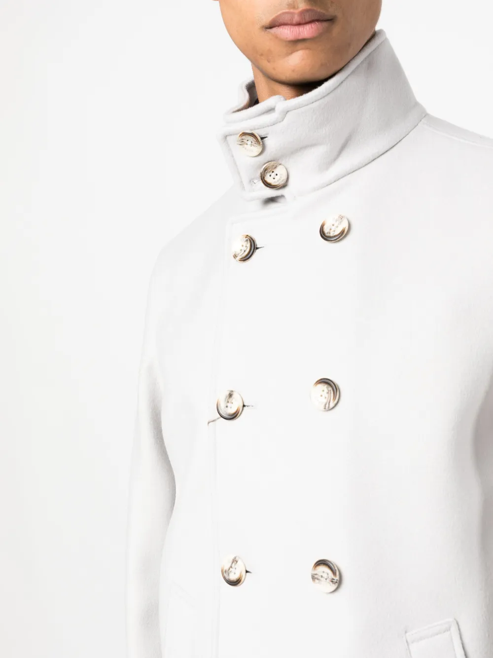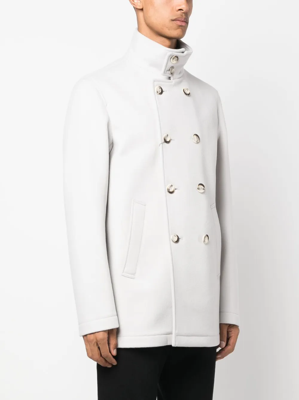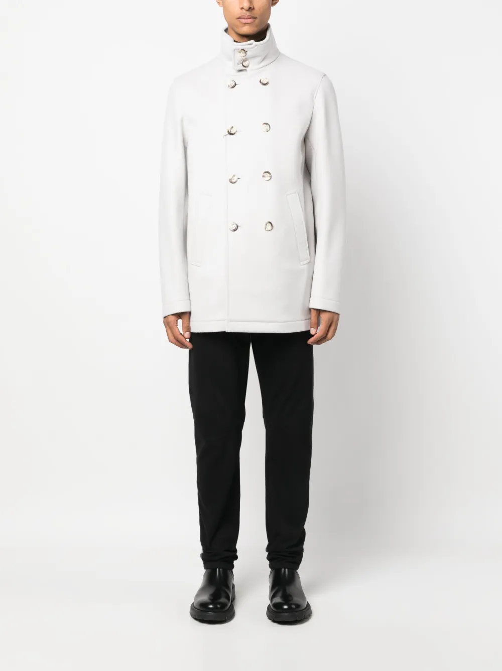 Двубортное пальто с высоким воротником Herno, серый