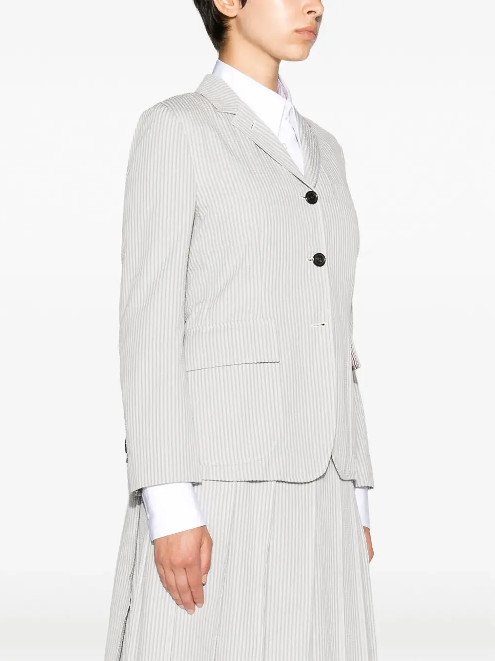 Однобортный блейзер в полоску THOM BROWNE, серый