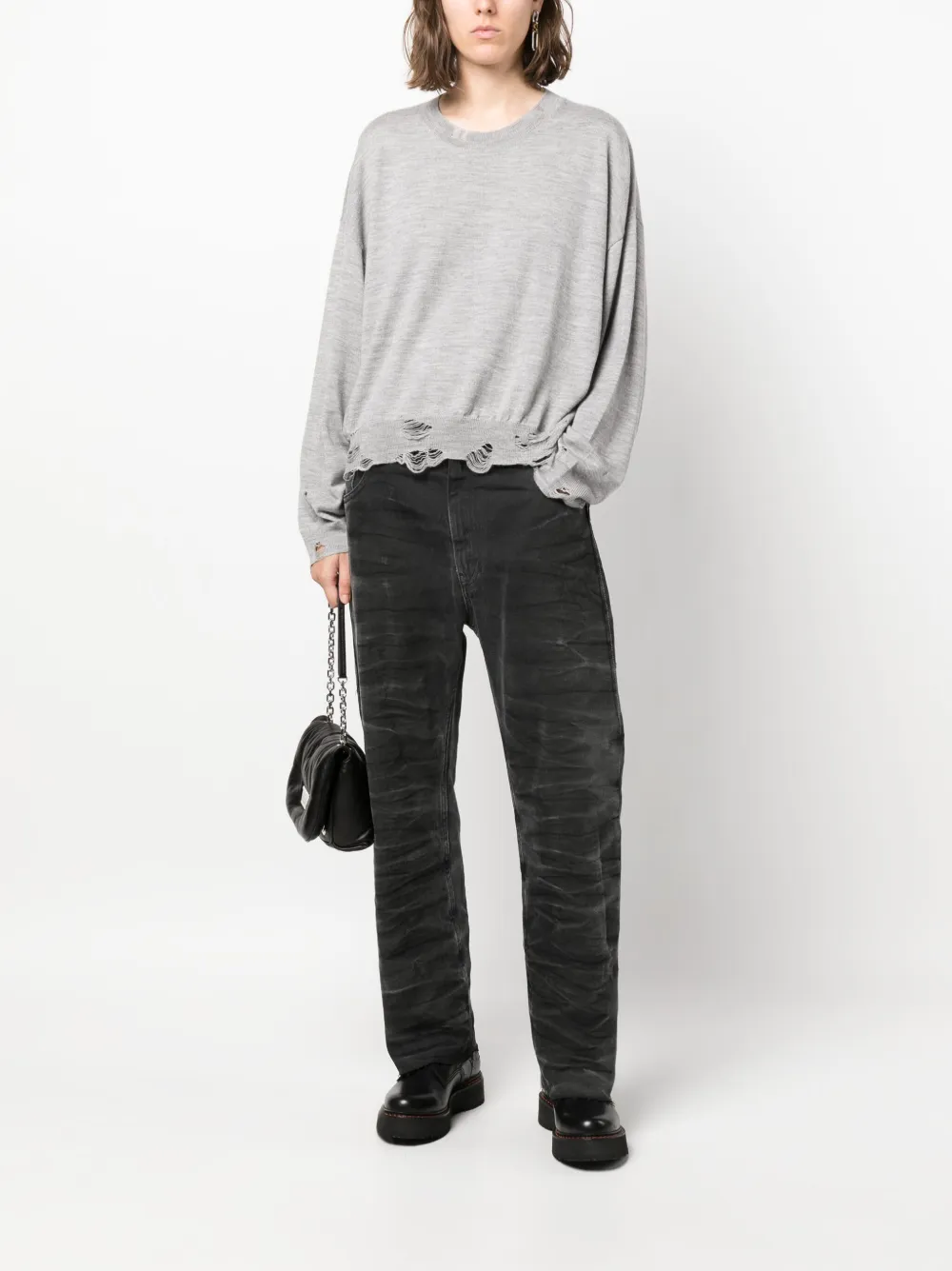 Джемпер из шерсти мериноса с эффектом потертости R13, серый 65 690₽