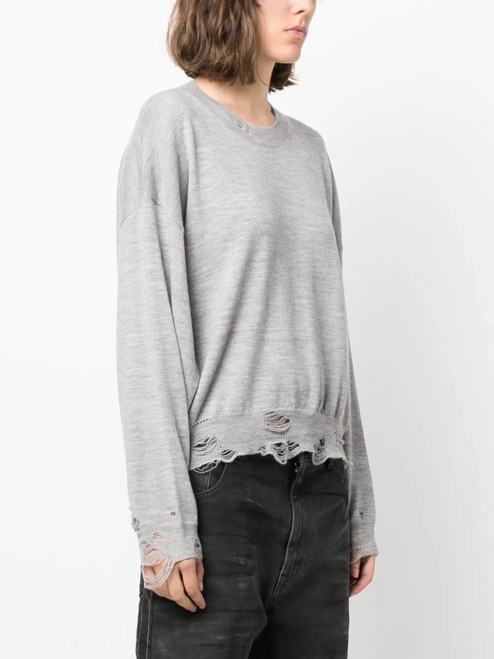 Джемпер из шерсти мериноса с эффектом потертости R13, серый