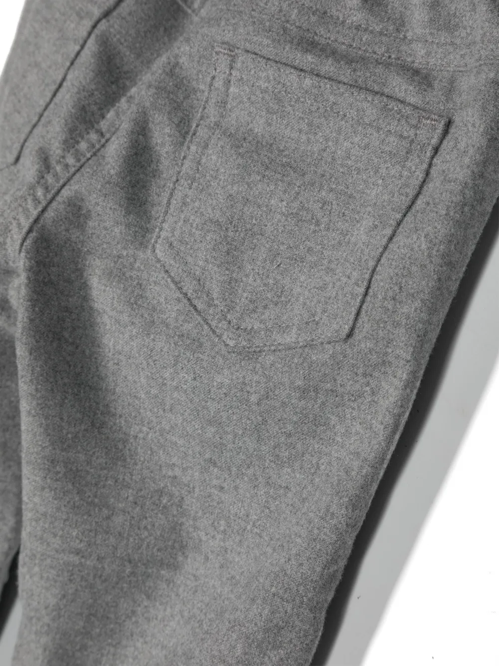 Вышитый логотип спереди, строчка в тон, средняя посадка, прямой крой, эластичный пояс, застежка на молнии и пуговице спереди, два кармана по бокам и два накладных кармана сзади.