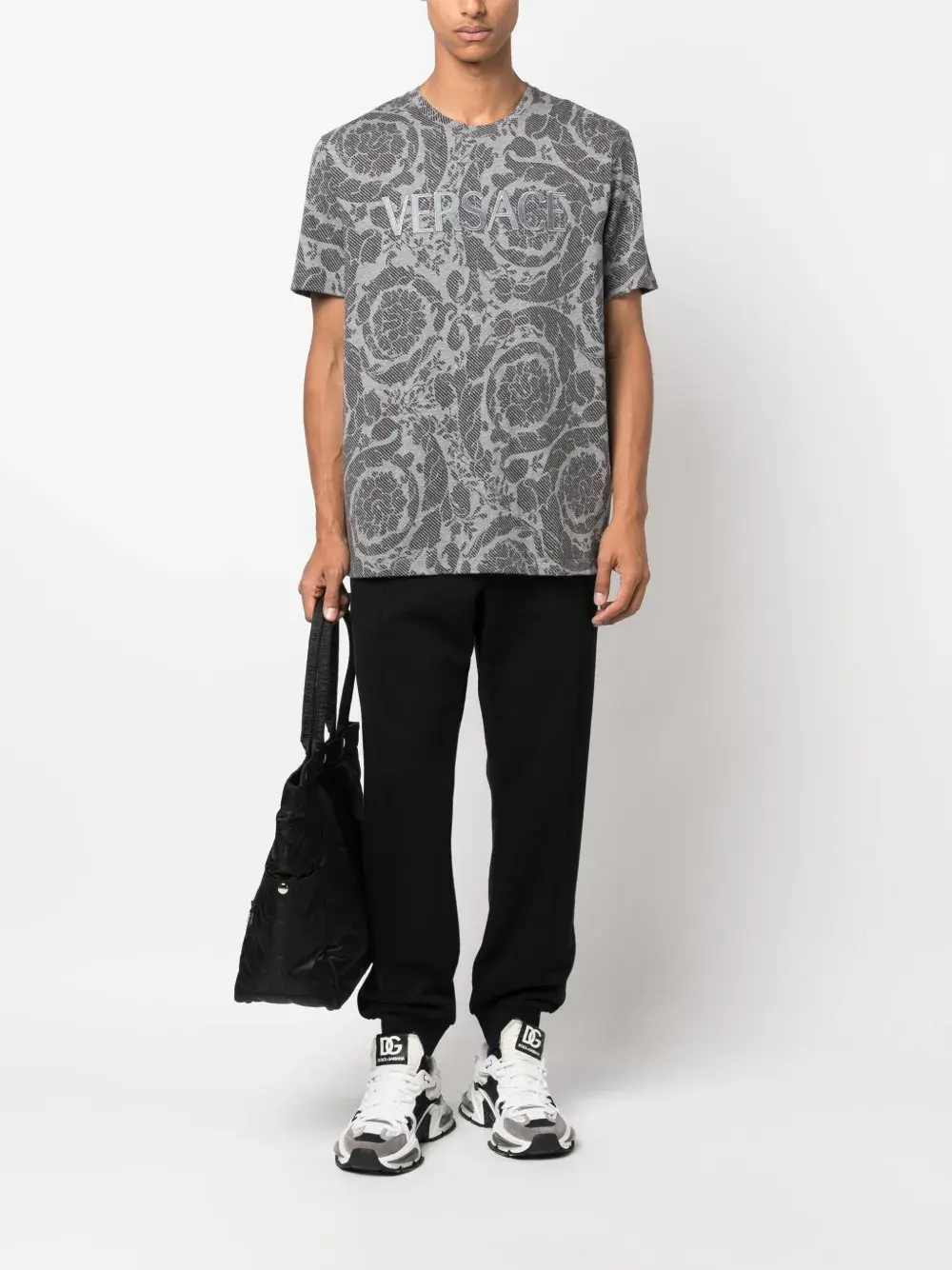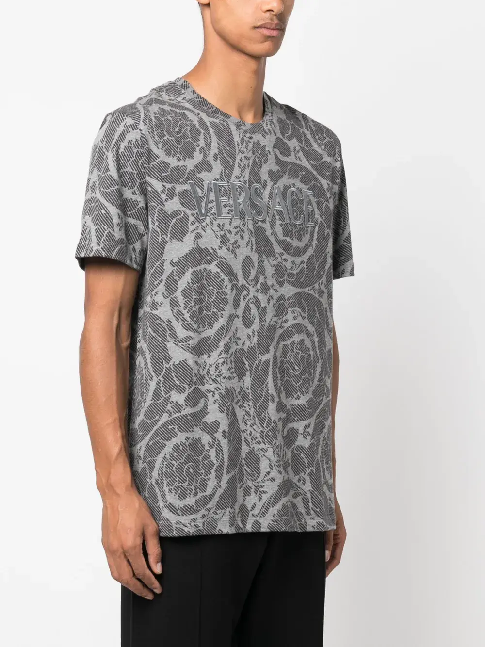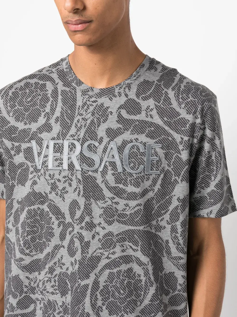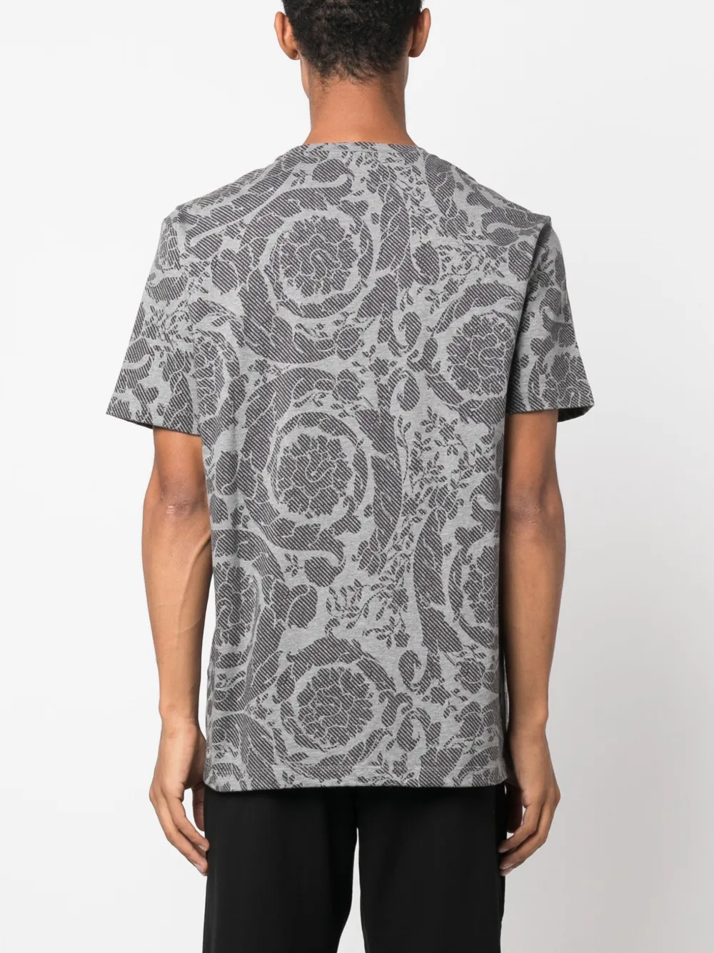 Серый, хлопок, знаковый принт Barocco, принт с логотипом на груди, круглый вырез, короткие рукава и прямой подол.