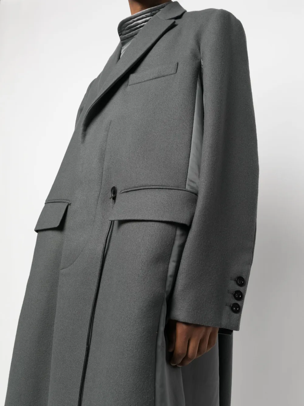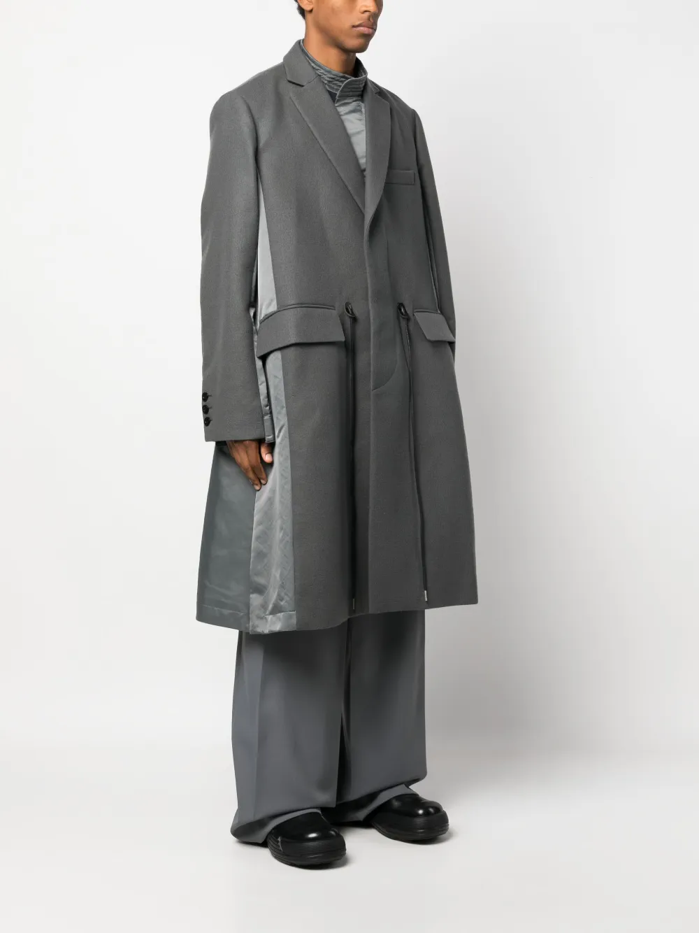 Шерстяной тренч с кулиской SACAI, серый 130 542₽