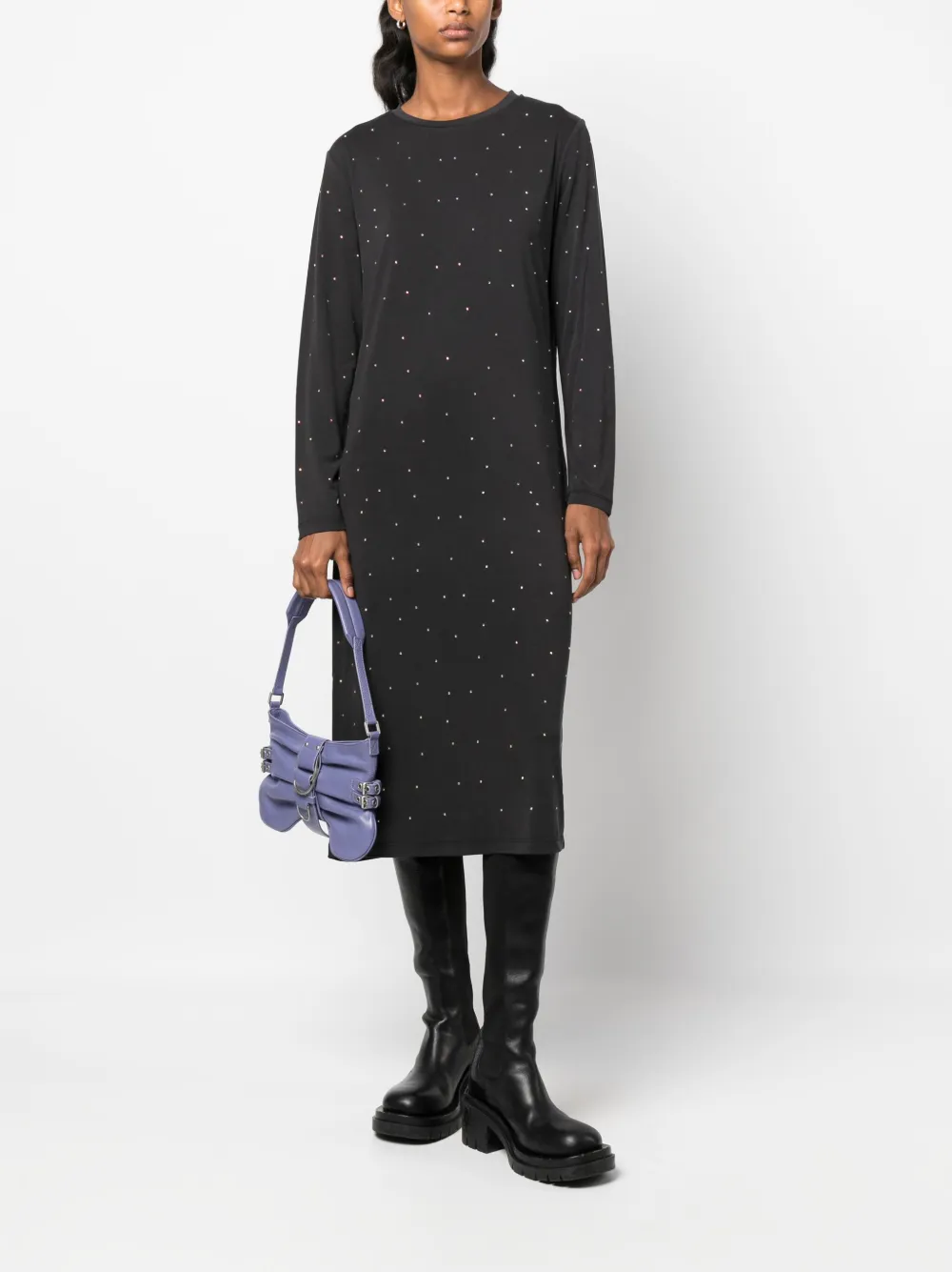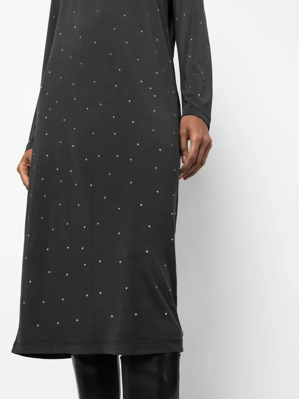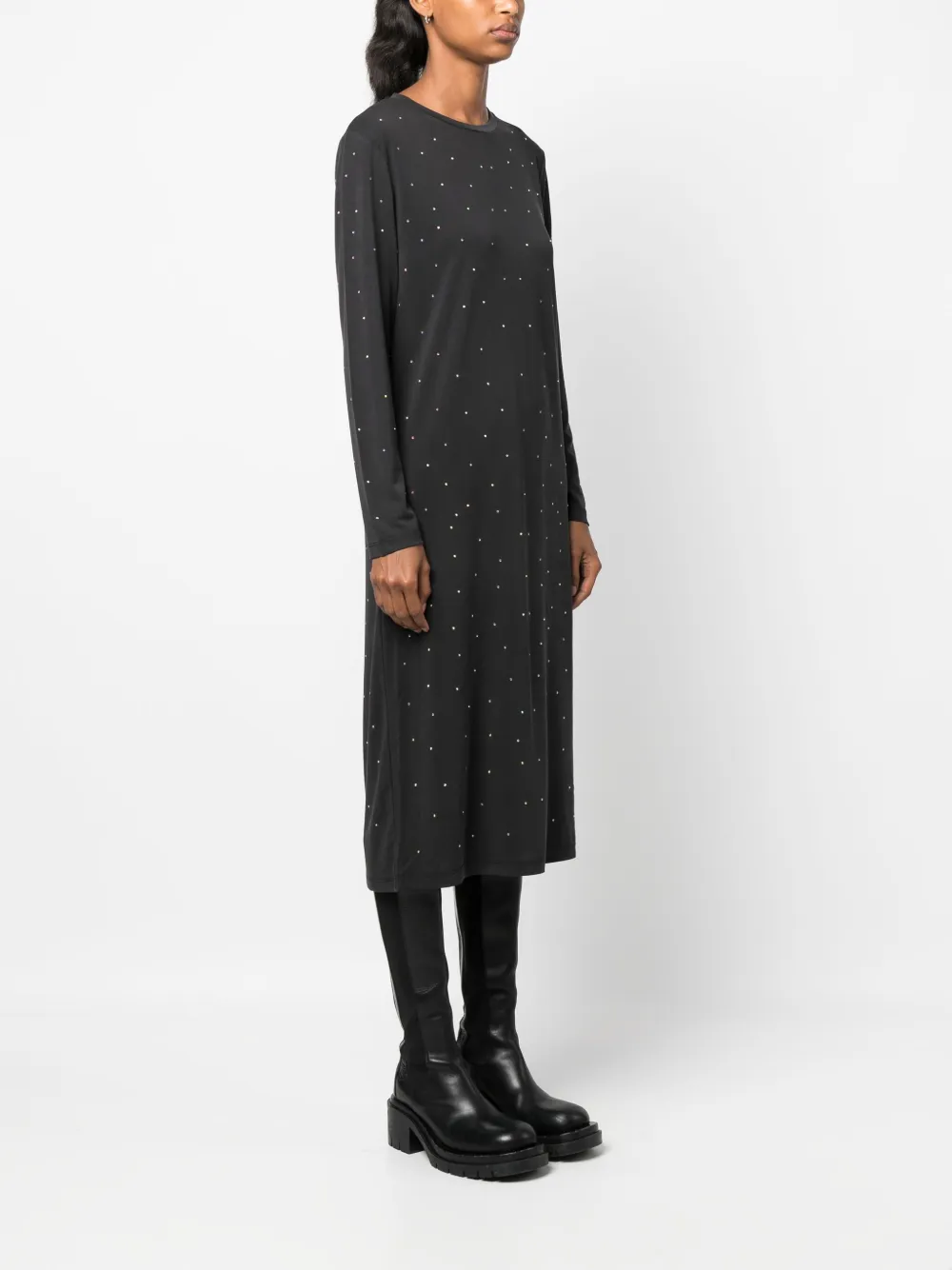 Подробнее о товаре: Антрацитово-серый, смесовый модал, блестящий материал, круглый вырез, длинные рукава, прямой подол и длина до середины икры. Этот товар как минимум на 50% состоит из материалов, которые признаны более безопасными для окружающей среды, и/или произведены с использованием методов, которые помогают сократить потребление воды и химических веществ. Узнать больше о том, какие товары получают отметку «Ответственный выбор», можно из материала «Как мы оцениваем экологичность и этичность».