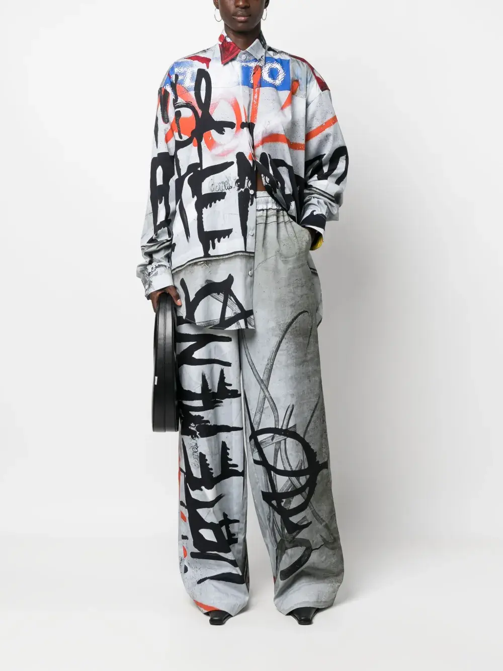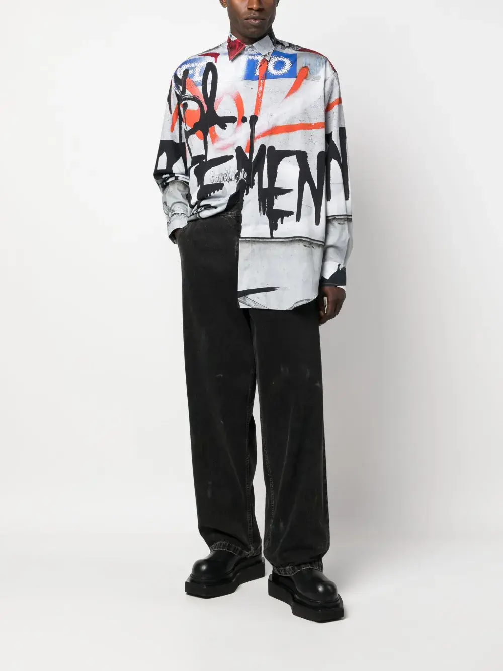 Рубашка с принтом граффити VETEMENTS, серый