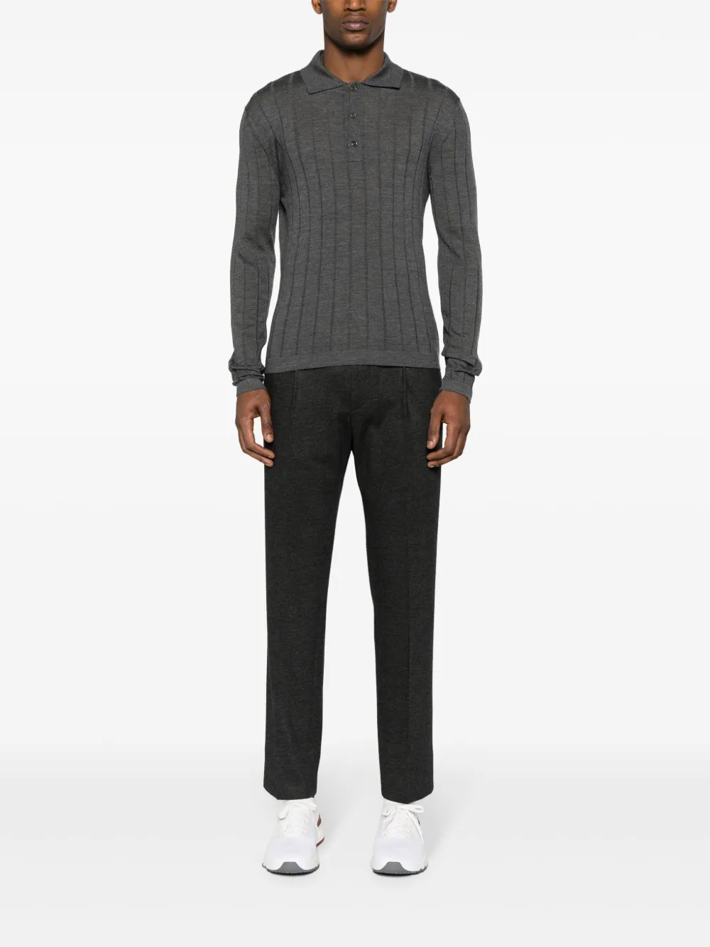 Рубашка поло из вирджинской шерсти в рубчик Corneliani, серый