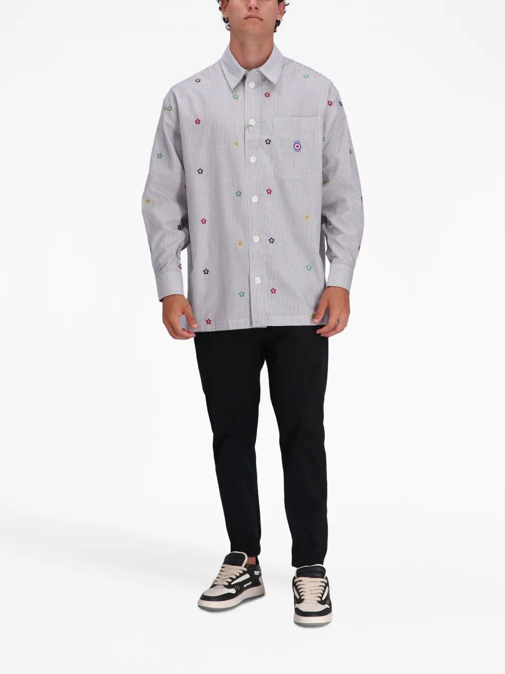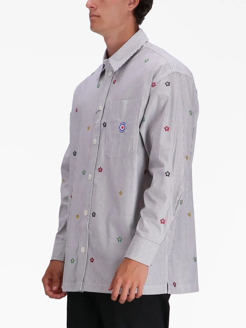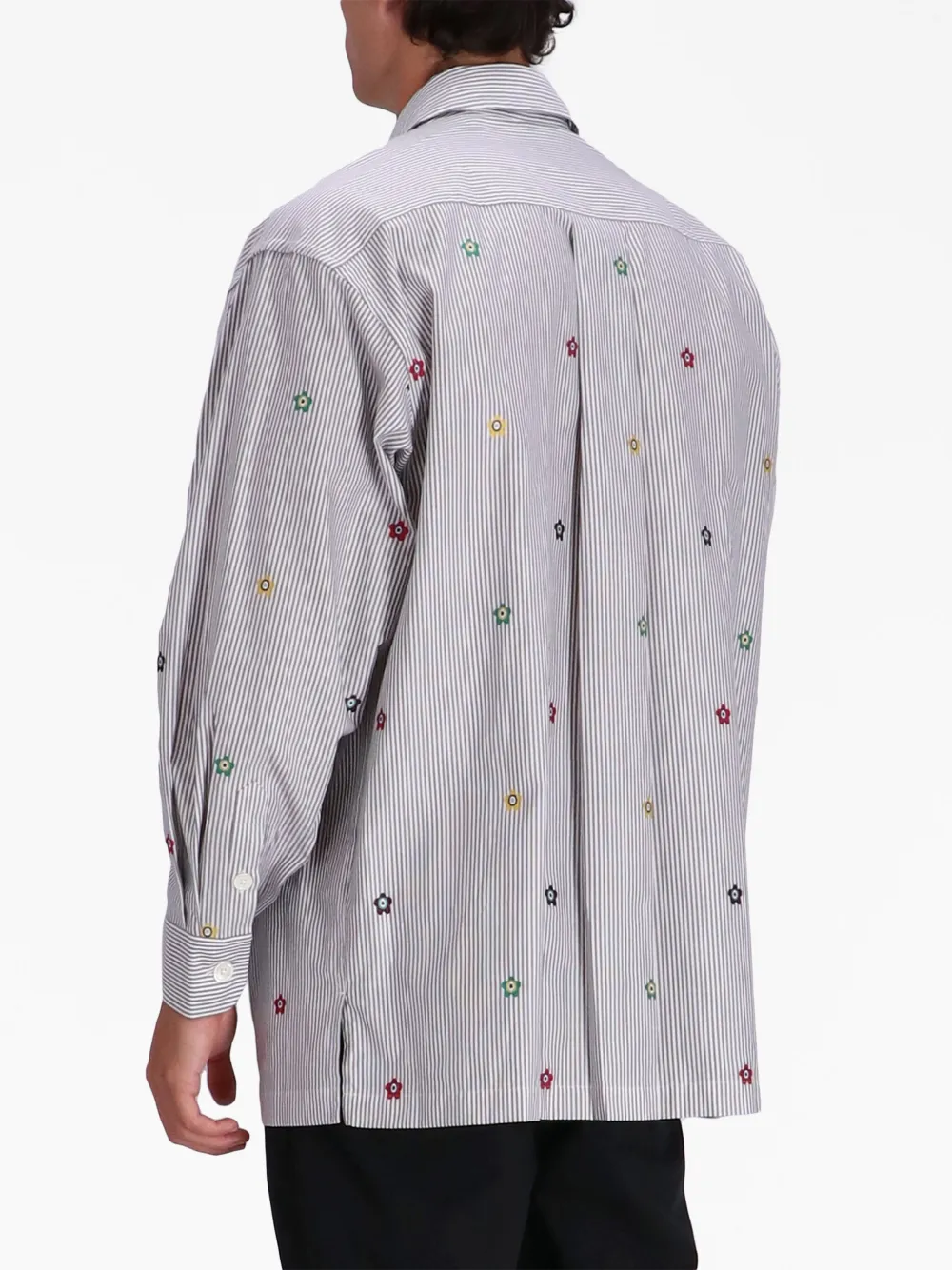 Серый, разноцветный, хлопок, узор Boke Flower, классический воротник, застежка на пуговицах спереди, длинные рукава, нашивка с логотипом спереди, манжеты на пуговицах и закругленный подол.
