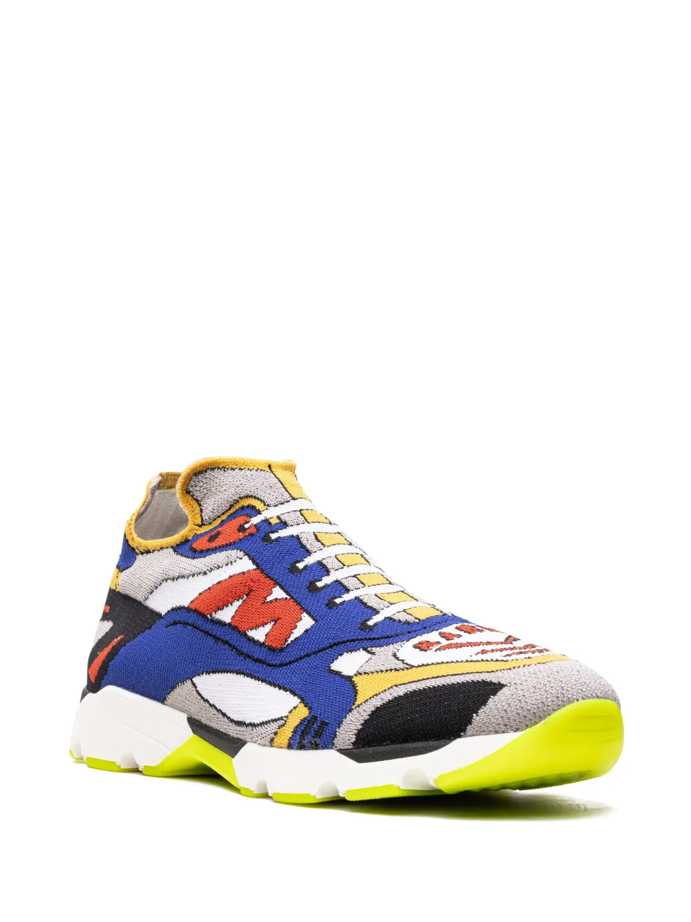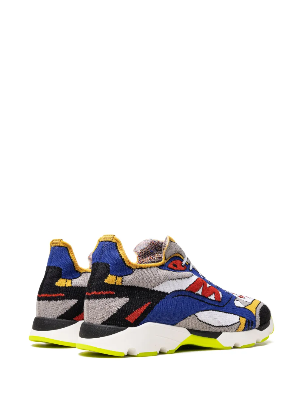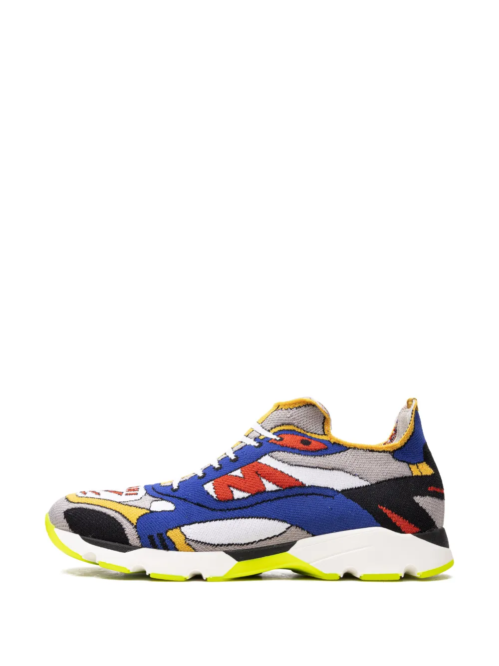 Разноцветный, принт тромплей, логотип в технике интарсия, сетчатые вставки, закругленный носок, контрастный носок и массивная резиновая подошва.