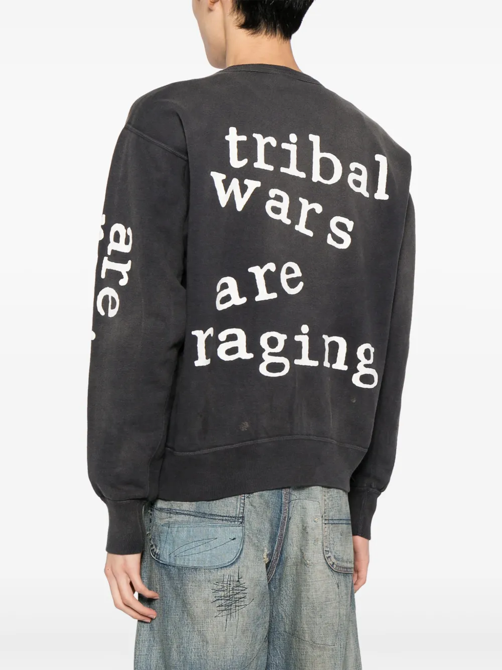 Черный/белый, лазурный, хлопок, эффект потертости, искусственно состаренное покрытие, логотип спереди, принт с надписью сзади, круглый вырез, длинные рукава и прямой подол.