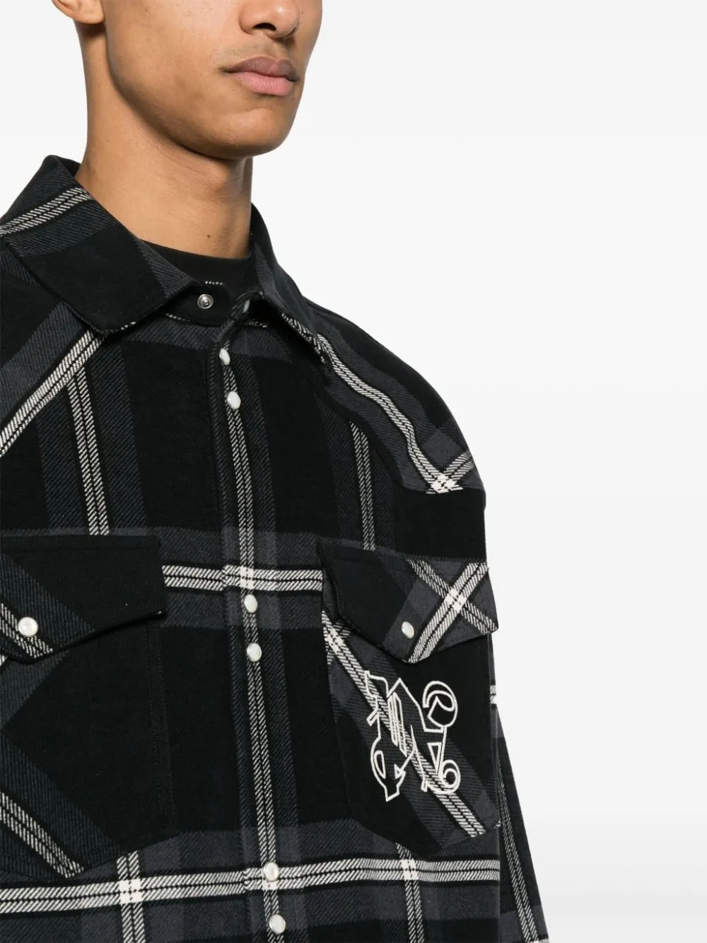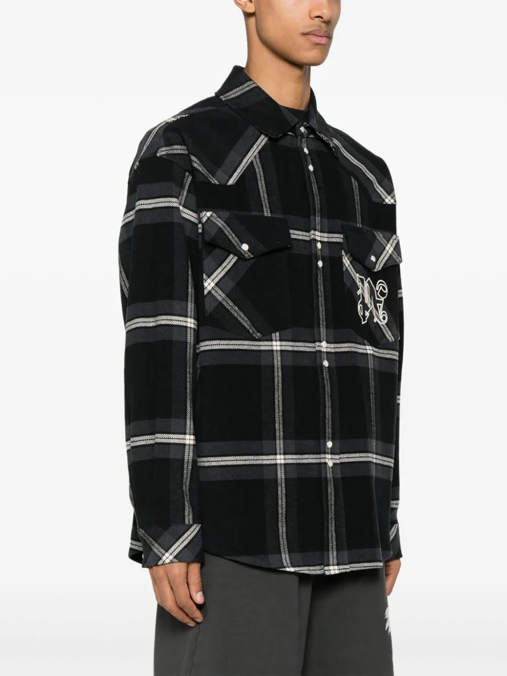 Фланелевая куртка-рубашка в клетку PALM ANGELS, серый