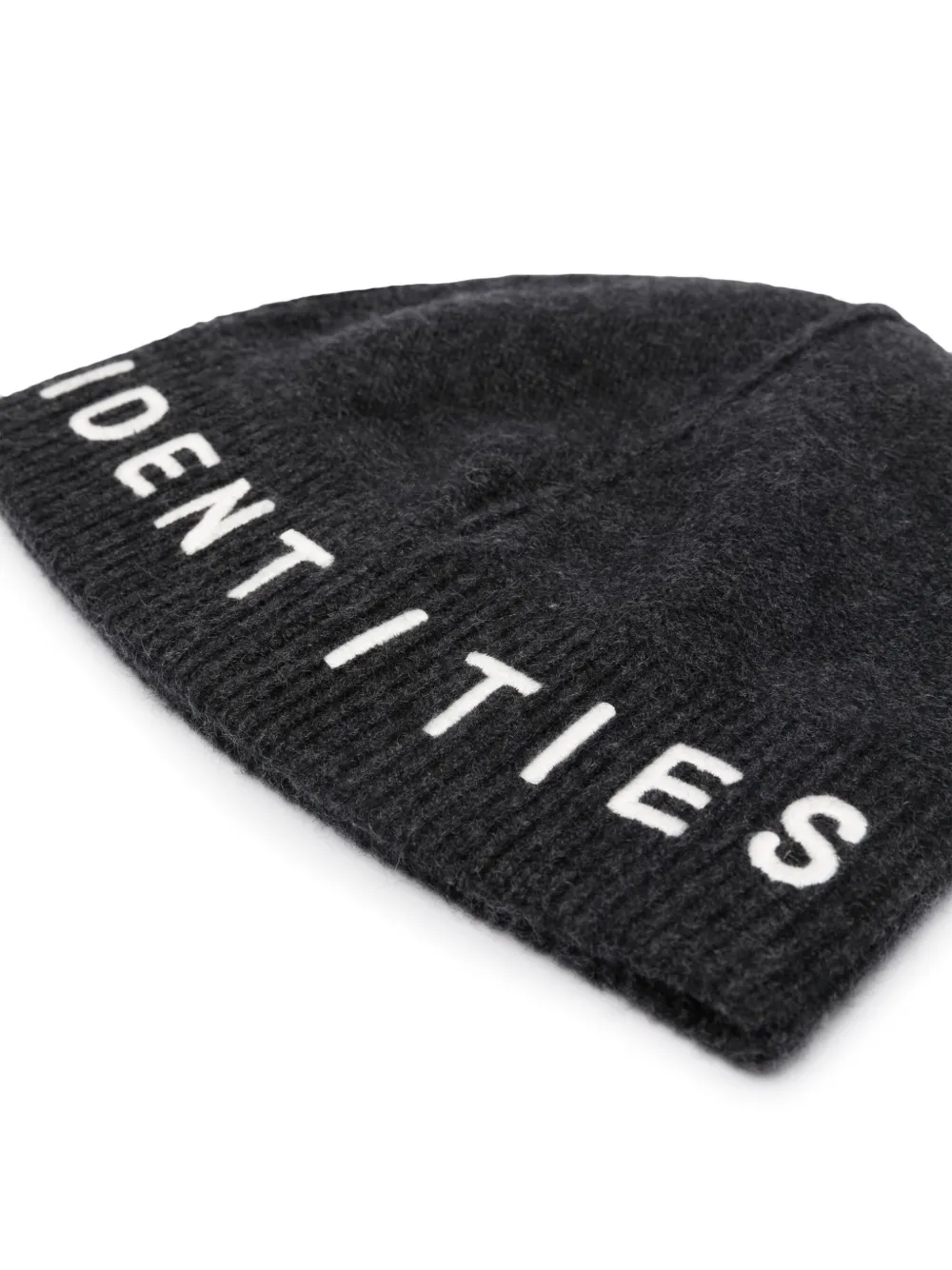 Шапка бини в рубчик с вышитой надписью Random Identities, серый