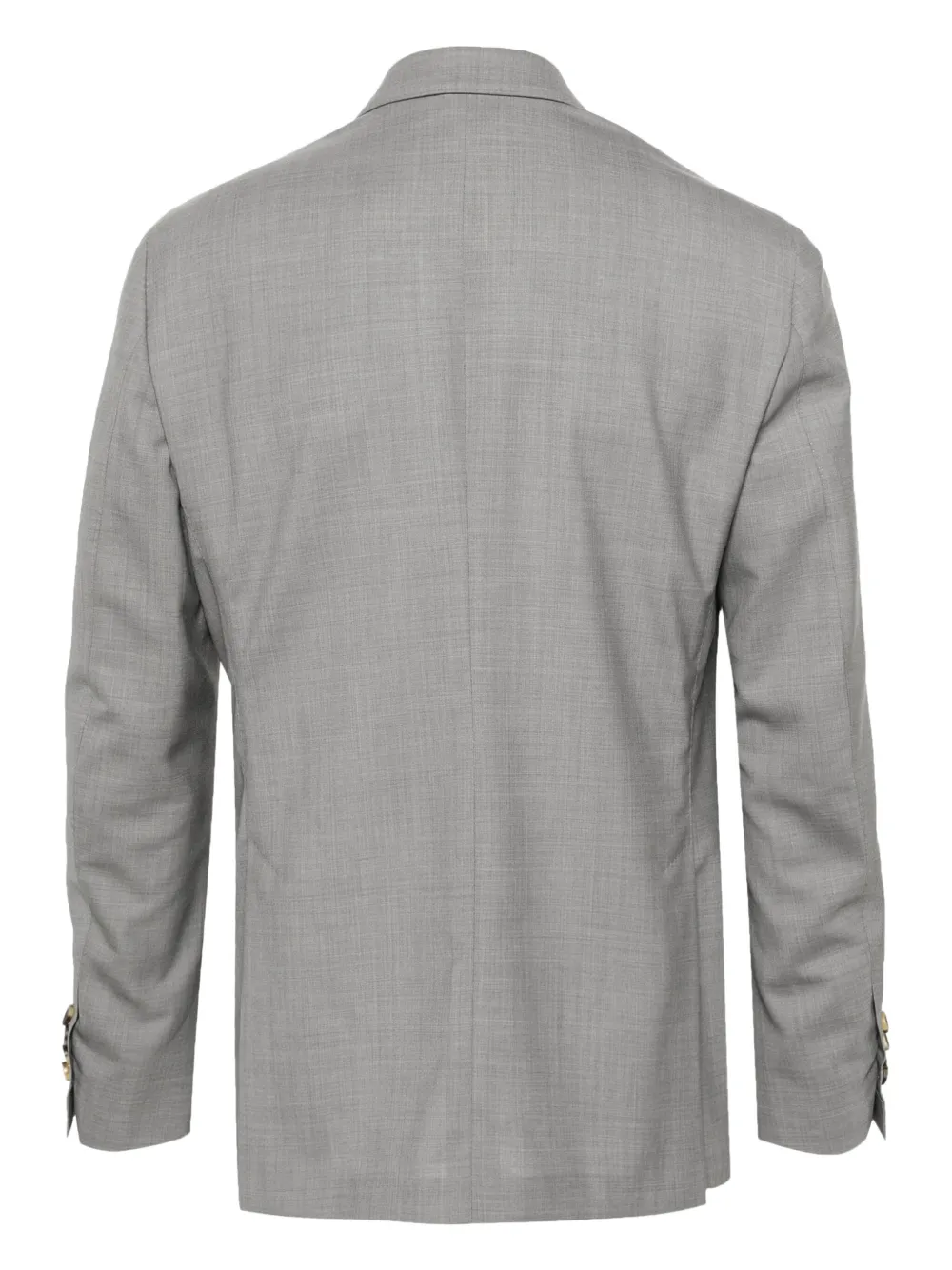Подробнее о товаре: • серый • шерсть • ткань с твиловым переплетением • заостренные лацканы • двубортная застежка на пуговицы • длинные рукава • манжеты на пуговицах • прорезной карман на груди • две боковые шлицы сзади • прямой подол • частичная подкладка • средняя посадка • ширинка на молнии • застежка на пуговицах спереди • два прорезных кармана по бокам • прорезной карман на пуговице сзади • петли для ремня • стрелки • строгий крой