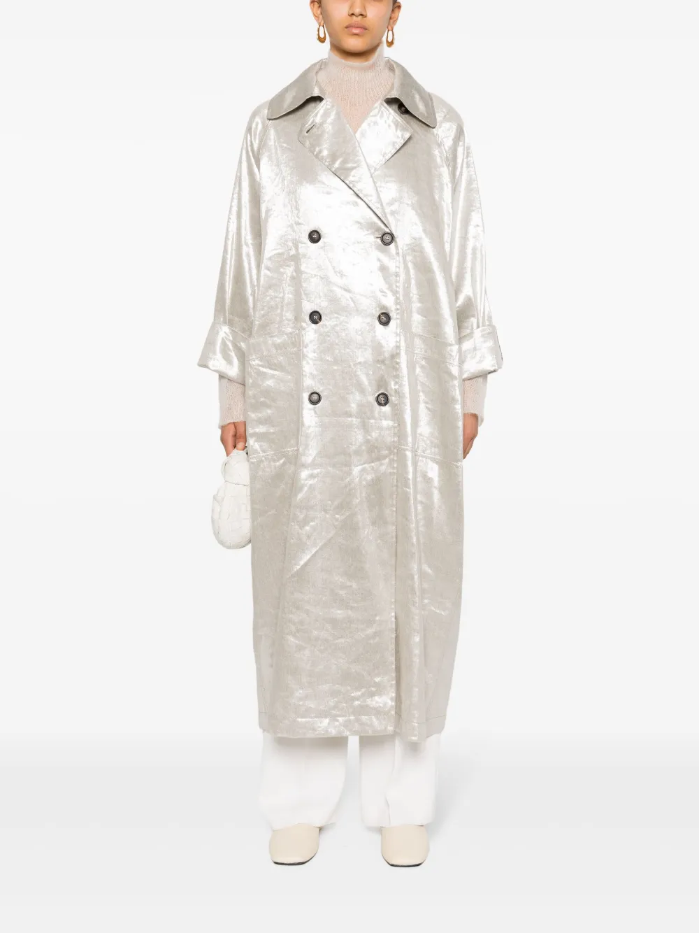 Тренч с эффектом металлик Brunello Cucinelli, серый