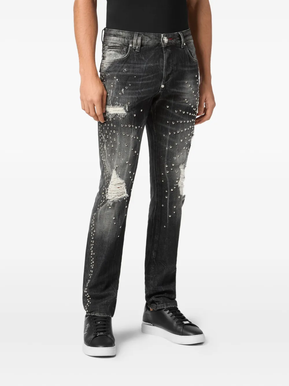 Потертые джинсы с заклепками Philipp Plein, серый