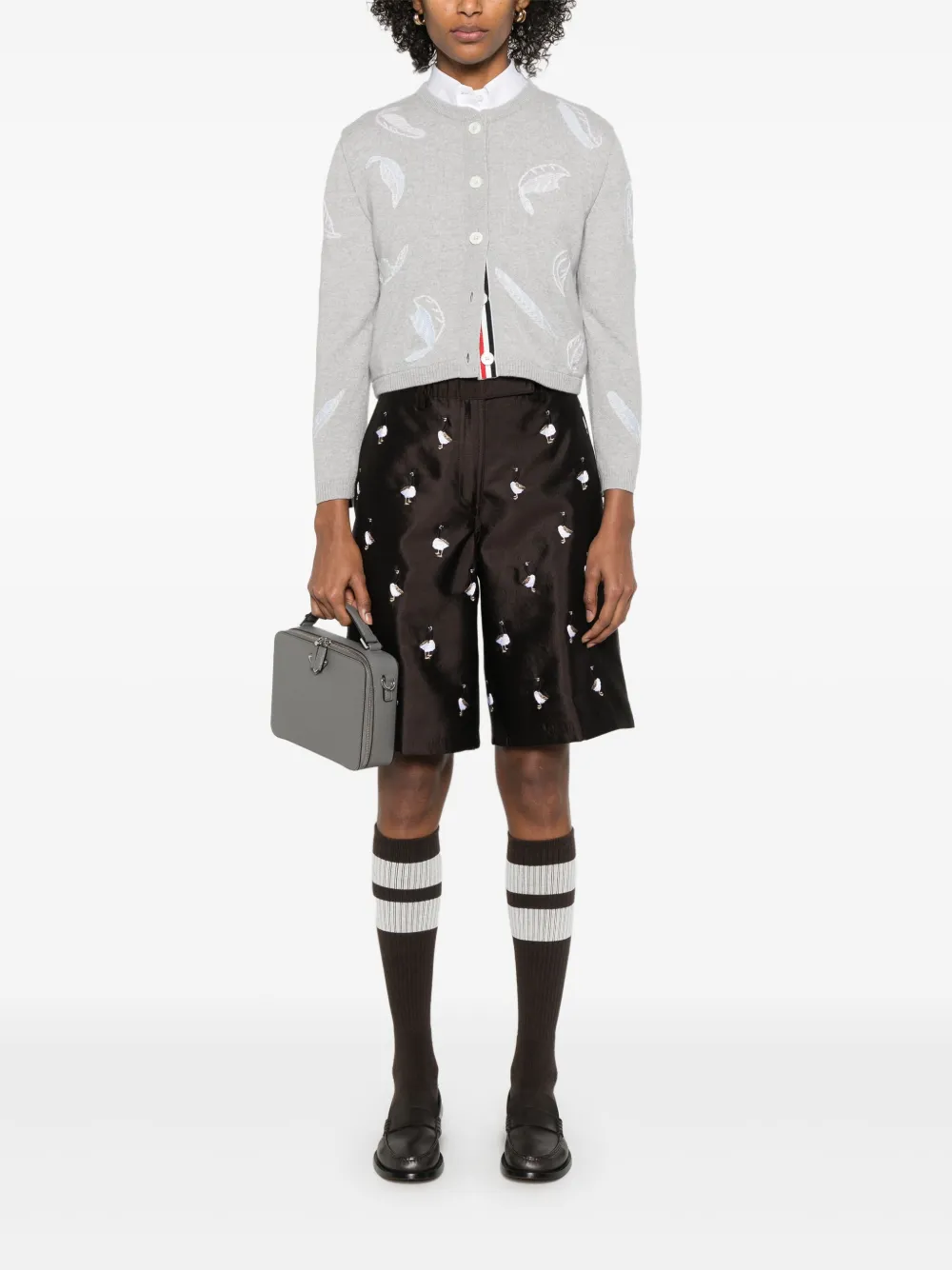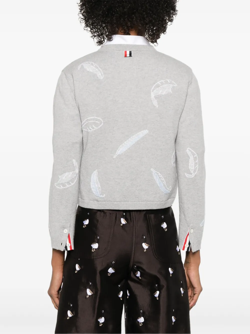 Укороченный кардиган с перьями THOM BROWNE, серый